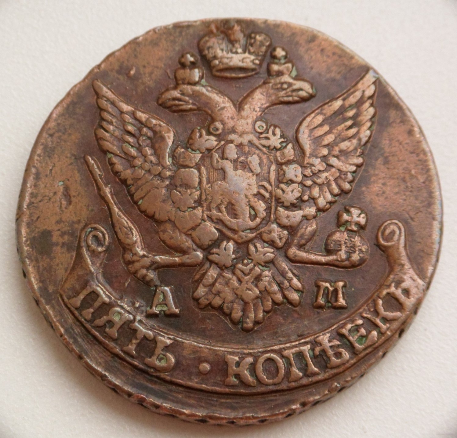 5 копеек 1796 года ЕМ — подлинная медная монета Екатерины II