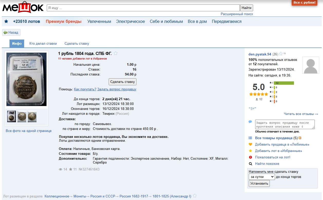 Эта "фирма" из Керчи слабирует фуфло. Вот такая подделка была продана на Мешке за 99 тыс. руб с небольшим.