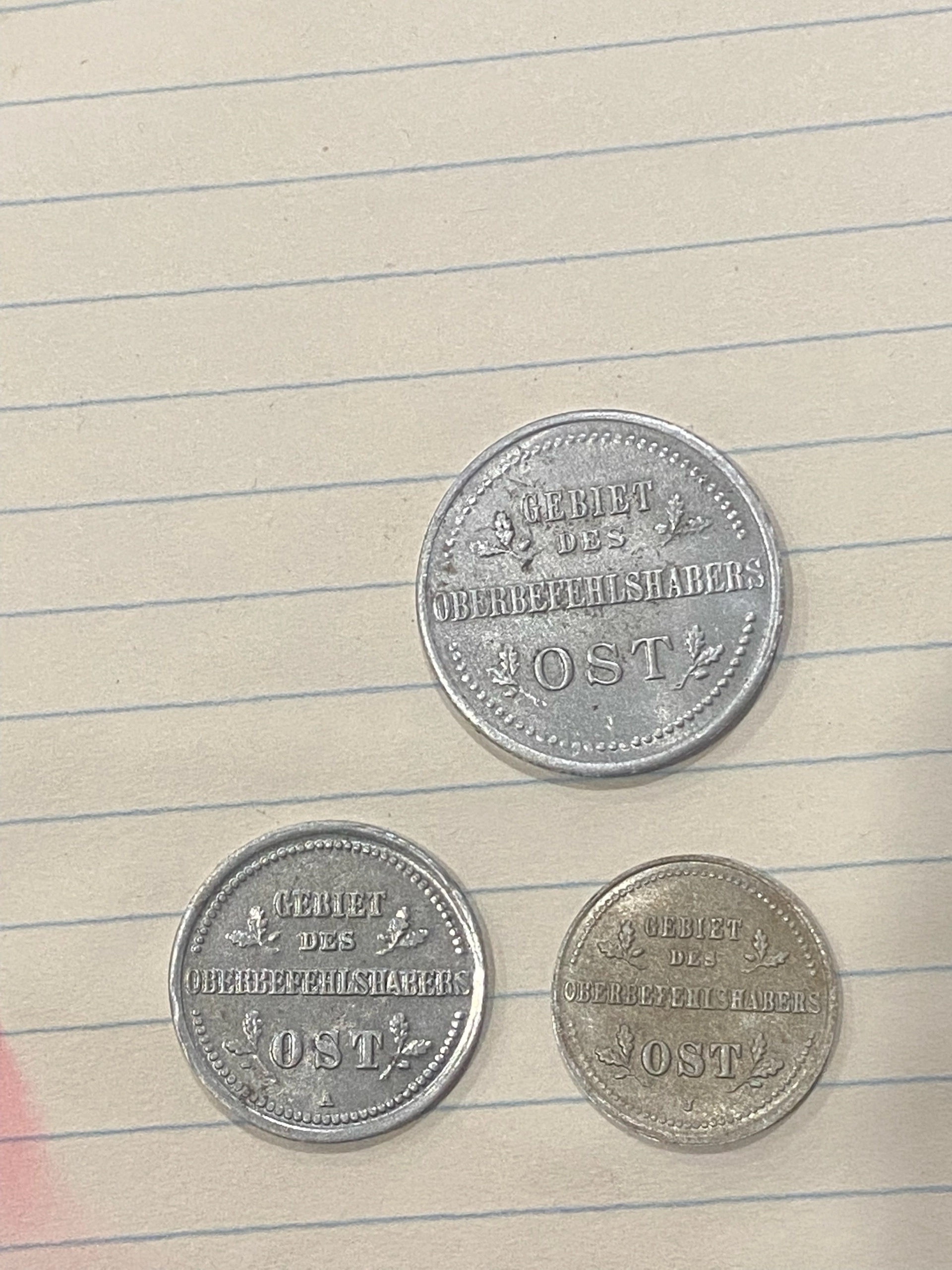 Представлены медные монеты номиналом 1, 2 и 3 копейки 1916 года, отчеканенные в последние годы правления Николая II. Эти монеты периода Первой мировой войны известны как «оккупационные» или «островные» (OST), так как чеканились для территорий, занятых русскими войсками. Подлинность конкретных экземпляров из поста вызывает серьёзные сомнения у экспертов.