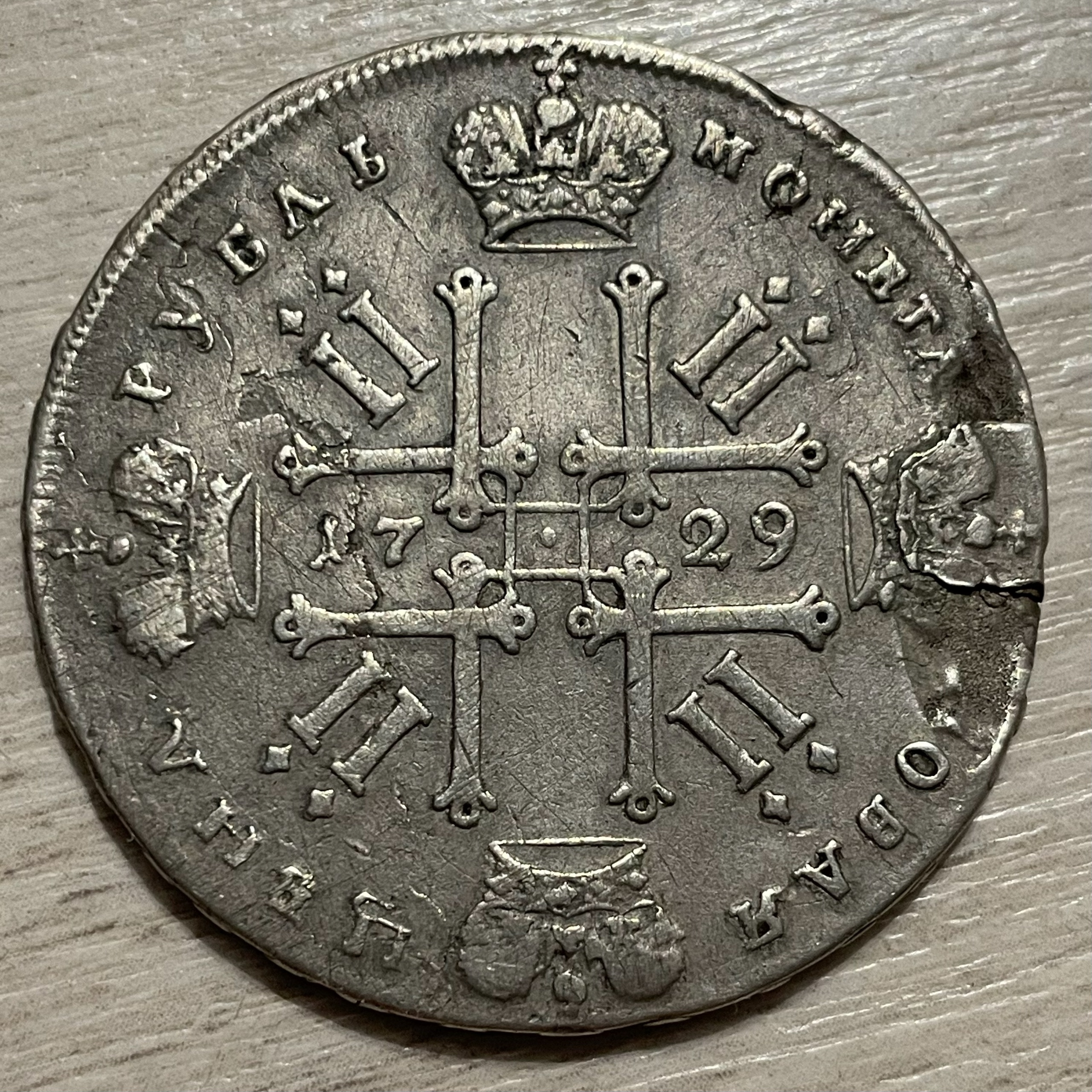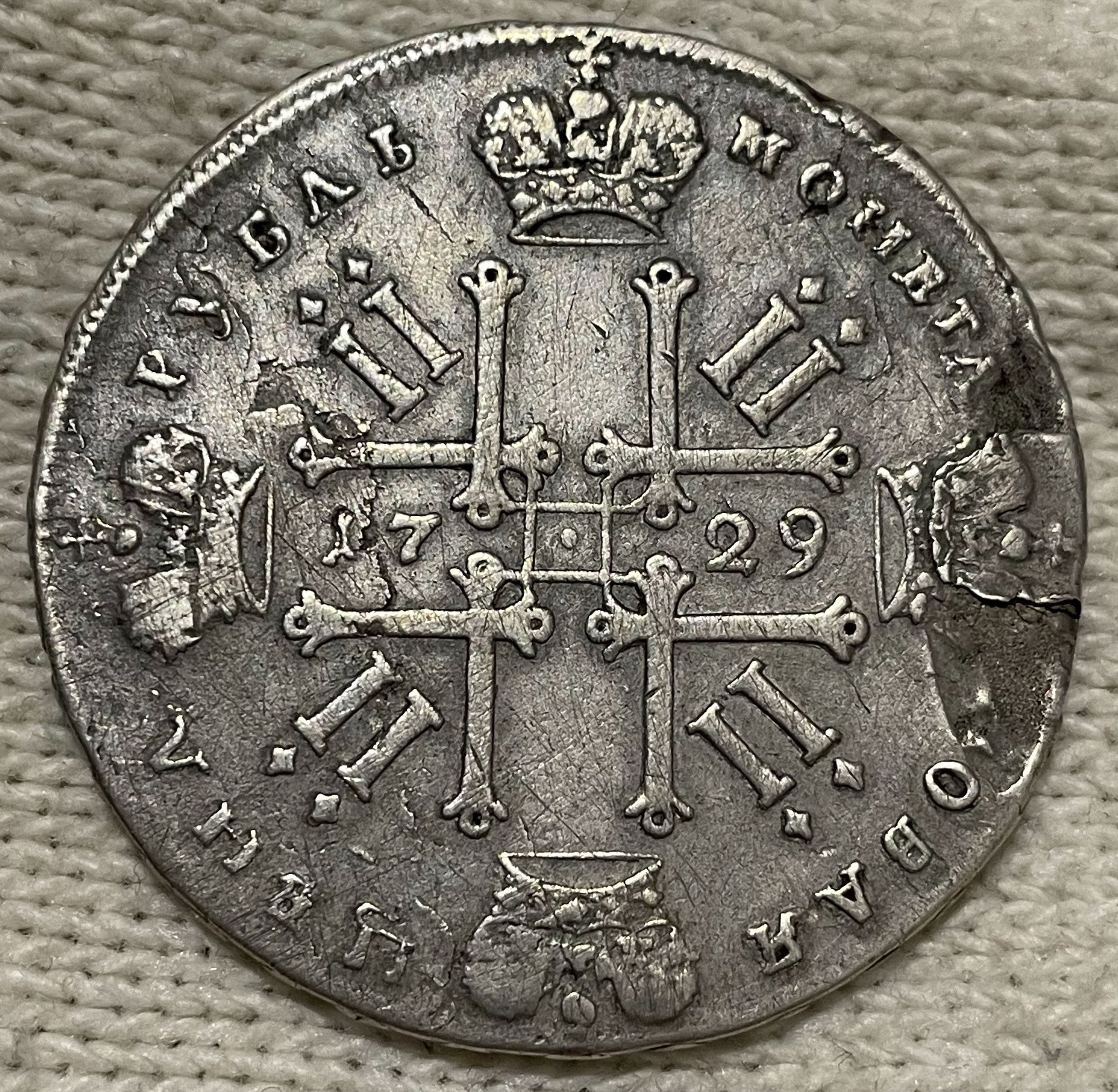 Рубль 1728 года Петра II — подлинная серебряная монета