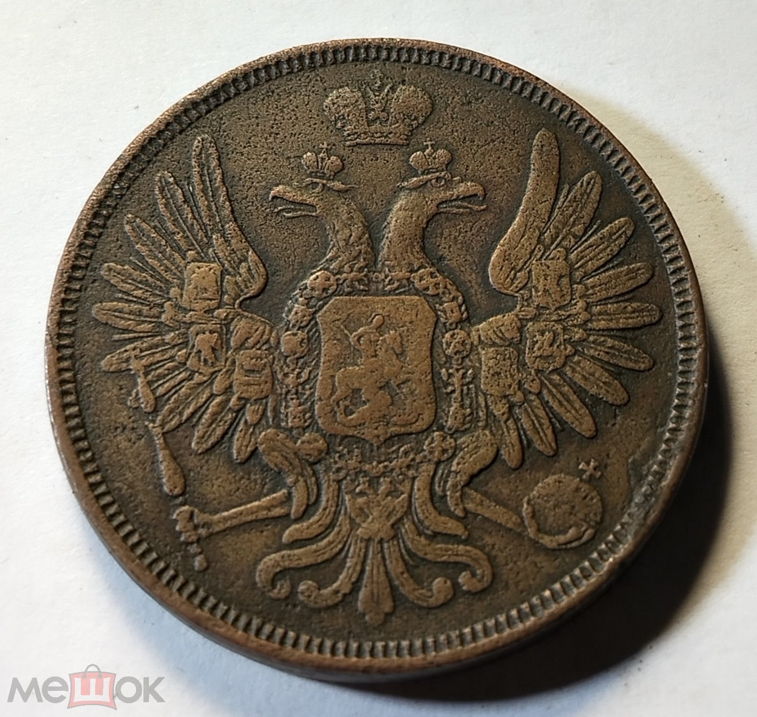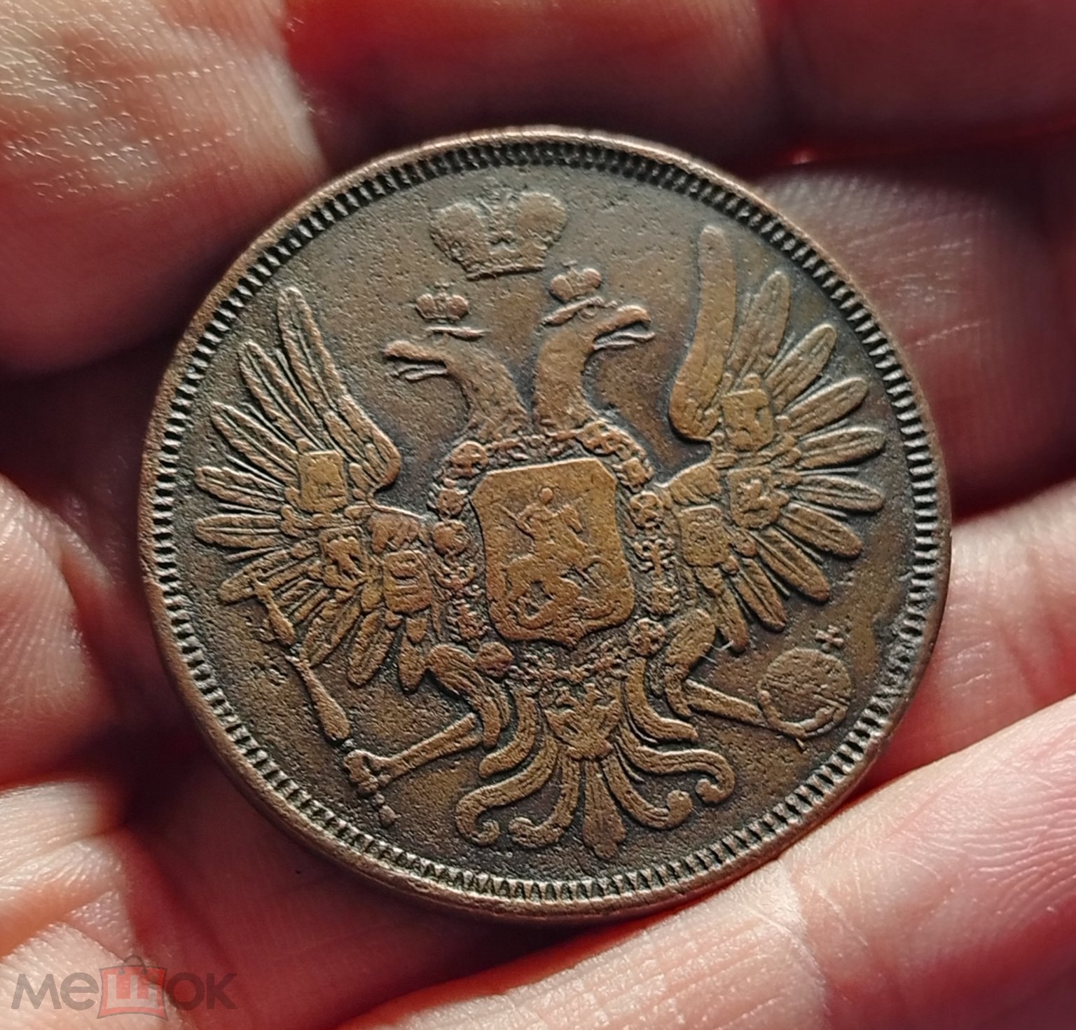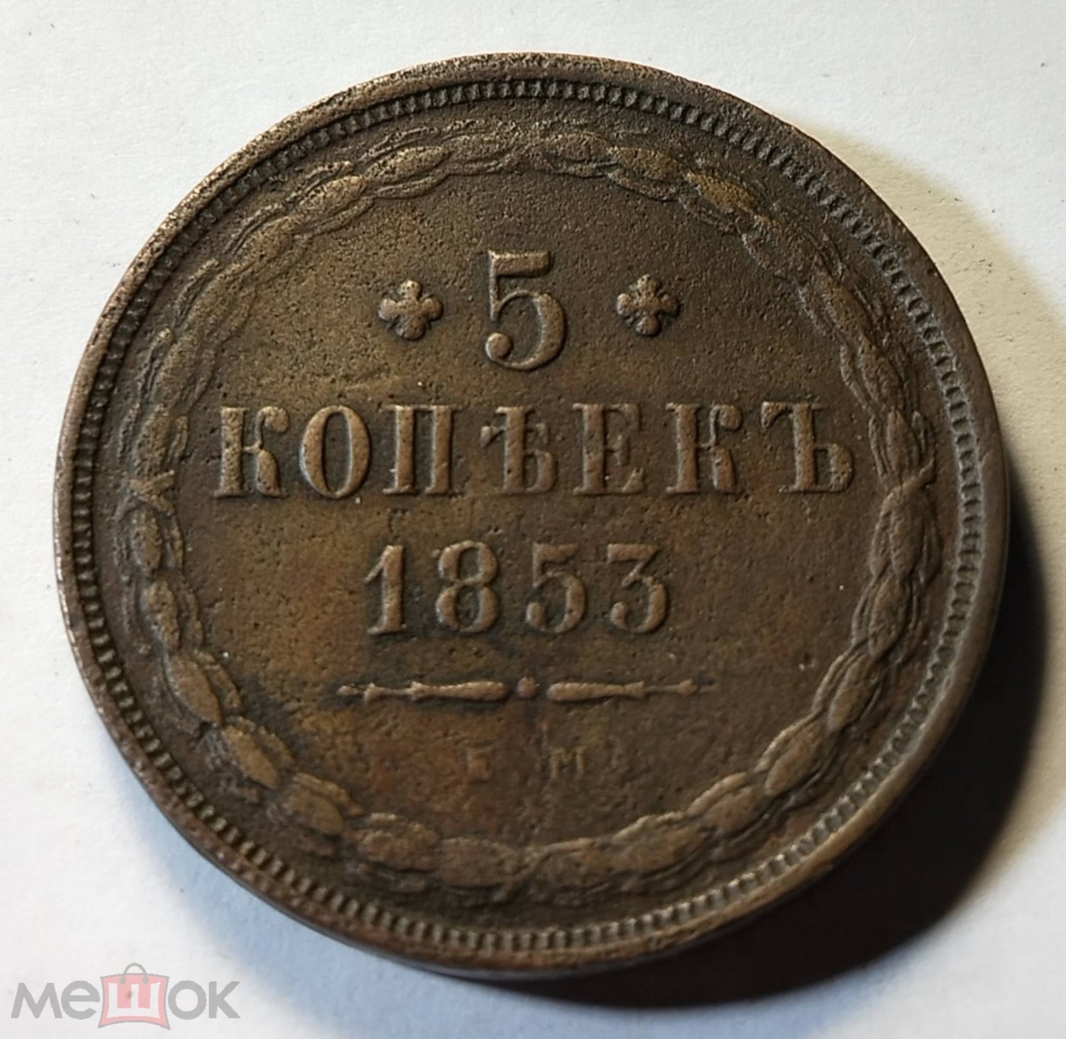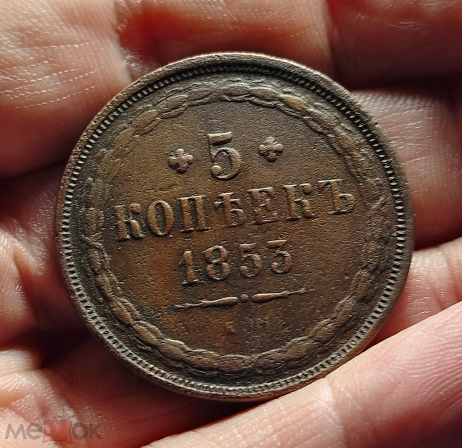 5 копеек 1853 года — подлинная медная монета Николая I