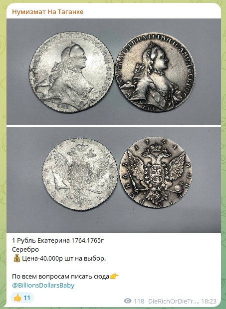 Рубль 1764 года Екатерины II — грубая современная подделка