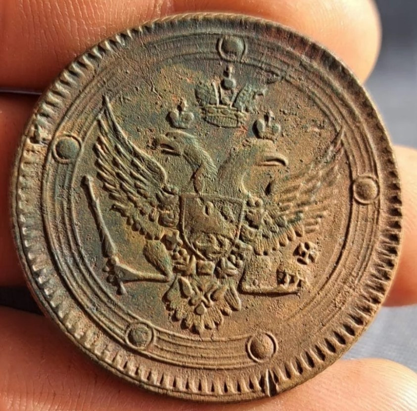 Монета представляет собой копию медных 5 копеек периода правления Александра I, отчеканенных на Екатеринбургском монетном дворе (знак «ЕМ»). Оригинальные монеты этого типа чеканились большими тиражами и являются распространёнными. Данный экземпляр является современной репликой, созданной для коллекционеров и исторического изучения.