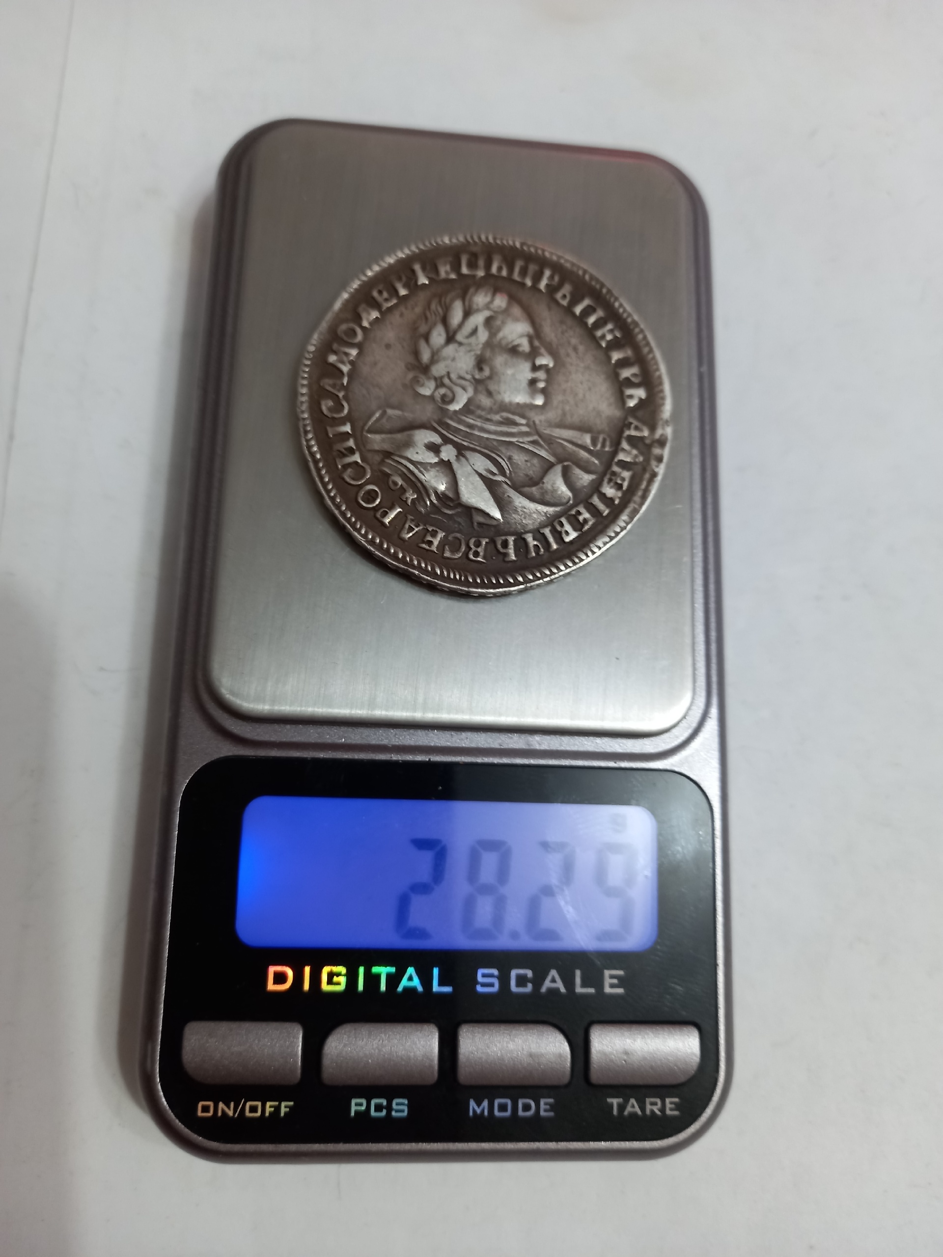 Представленная монета является современной подделкой рубля 1720 года, отчеканенного при Петре I. Оригинальные рубли этого периода имеют высокий рельеф и чёткую детализацию, чего не наблюдается на данном экземпляре. Комментаторы однозначно идентифицируют её как литьё и копию, что указывает на низкое качество исполения и фальшивое происхождение.
