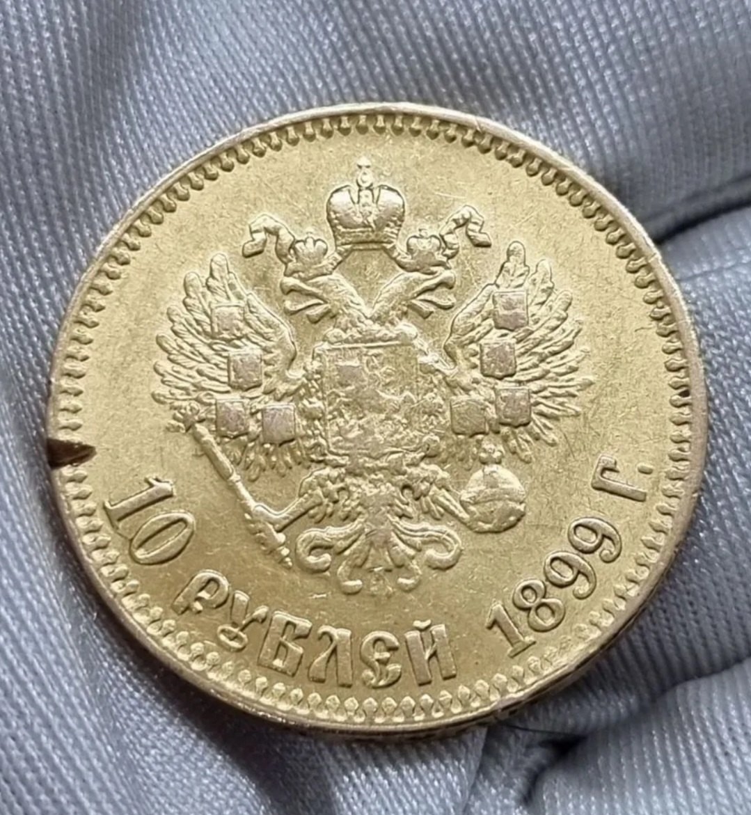 Монета представляет собой подделку золотых 10 рублей 1899 года правления Николая II. Оригинальные монеты этого года чеканились под руководством минцмейстера Аполлона Грасгофа (АГ), а на фейке ошибочно указаны инициалы Александра Редько (АР). Также отмечаются несоответствия в пробе металла, весе и следы грубой обработки гурта.