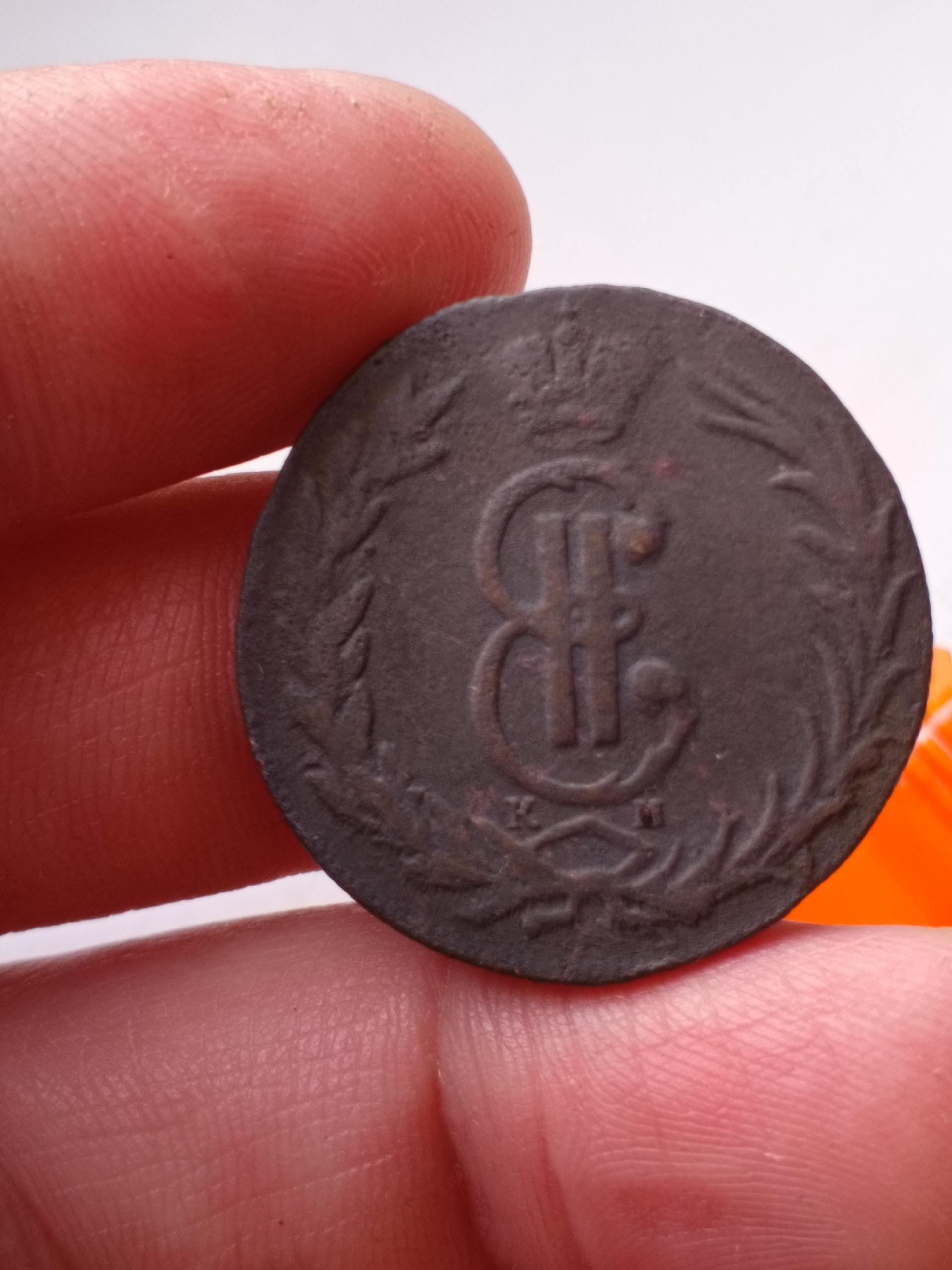 Медная сибирская монета 2 копейки 1768 года, отчеканенная в период правления Екатерины II на Сузунском монетном дворе. Монета имеет характерные особенности чеканки для данного типа и периода, включая специфику штемпеля. Судя по консенсусу в комментариях, монета является подлинной, найденной в земле, а указанные автором поста нюансы в буквах относятся к допустимым вариантам штемпеля или естественным дефектам.