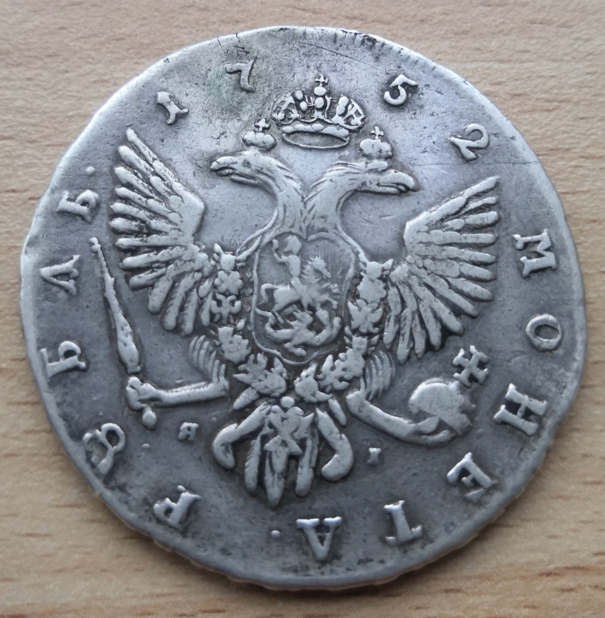 Рубль 1752 года Елизаветы Петровны — подлинная монета