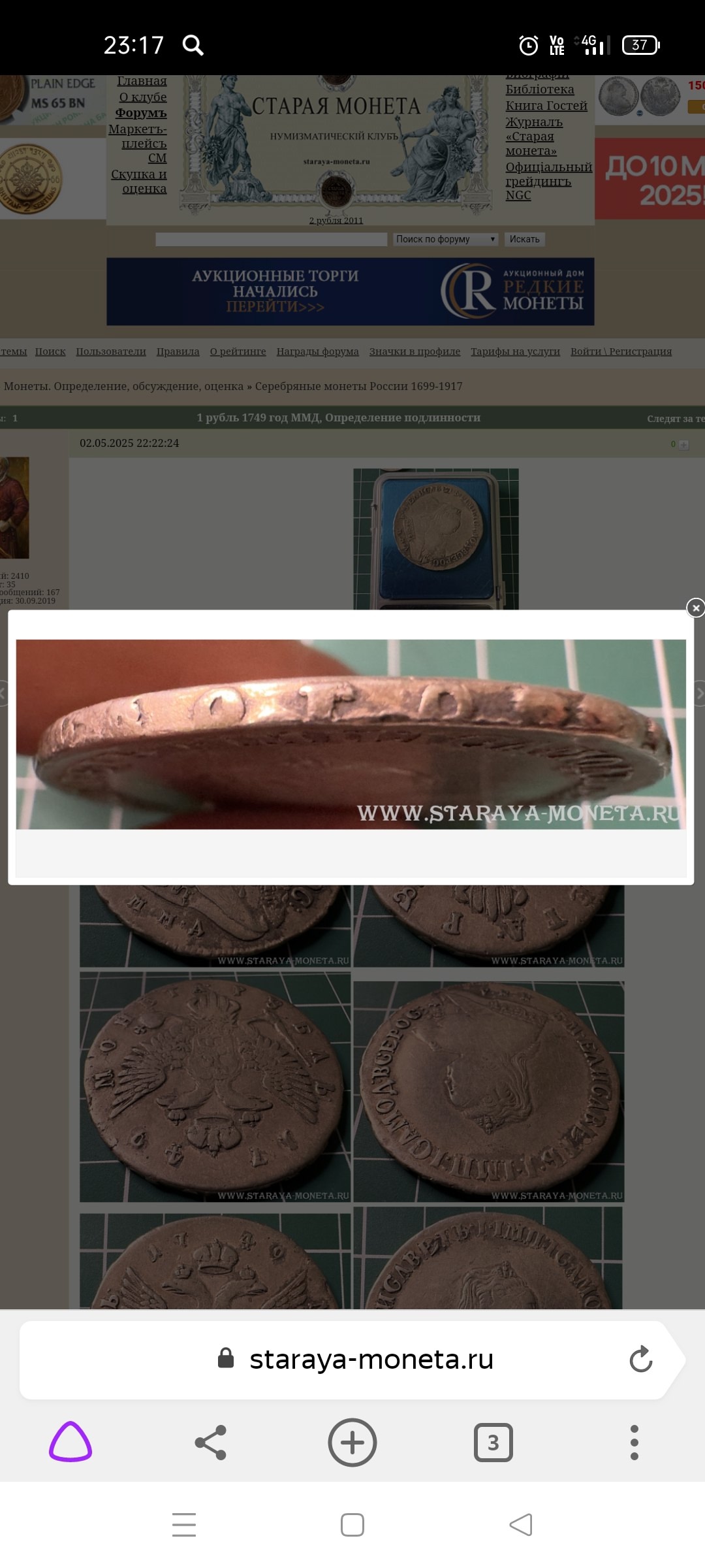 Рубль 1749 года Елизаветы Петровны — подлинная монета с дыркой