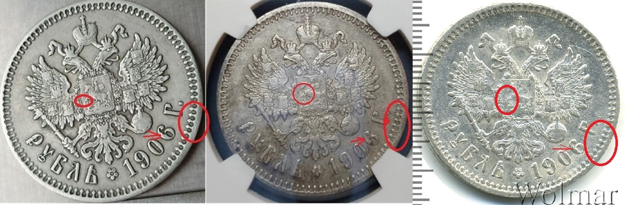 Рубль 1906 года — китайская подделка в слабе КНР