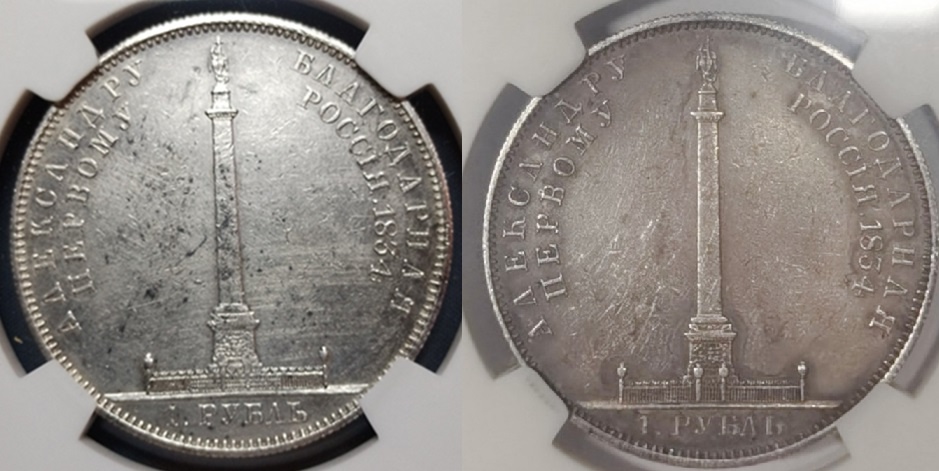 Рубль 1834 года «Колонна» — китайская подделка в слабе