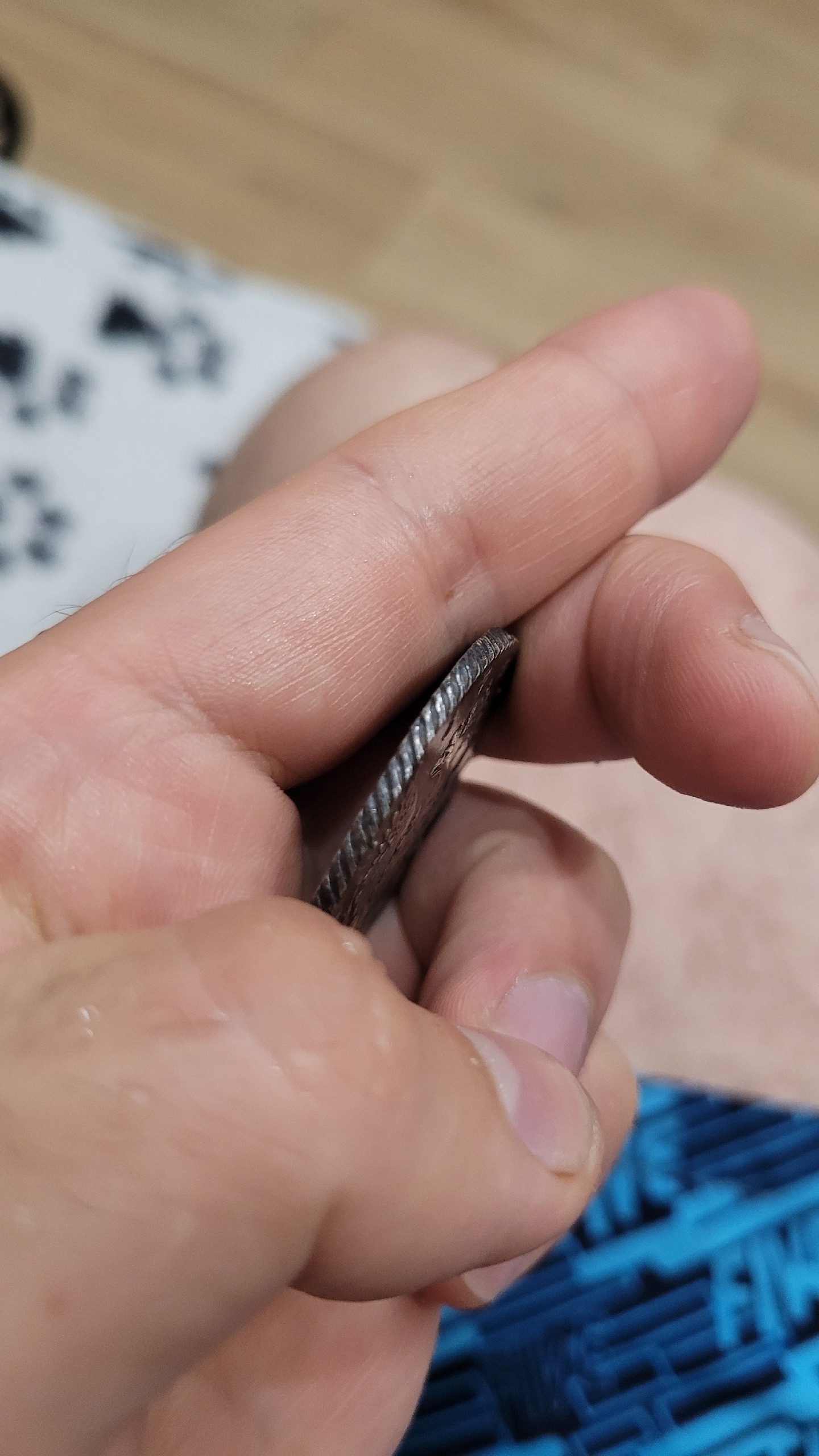 Монетка висела на стене несколько лет, почернела. Ранее была нормального цвета. Была куплена на мешке года 4 назад.