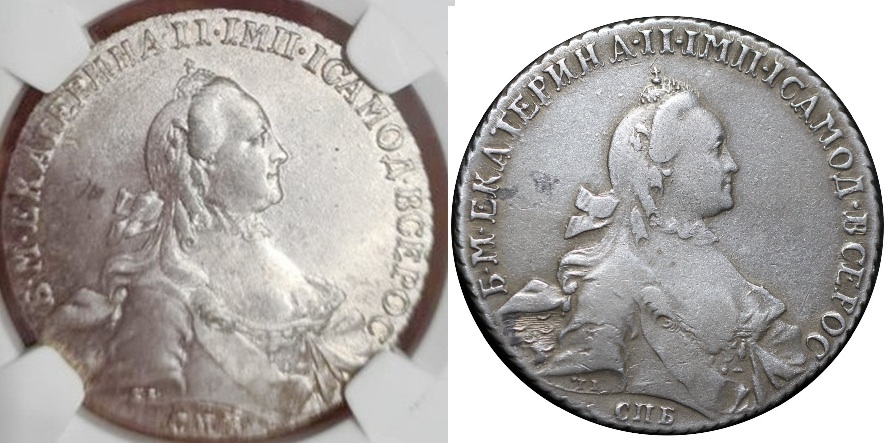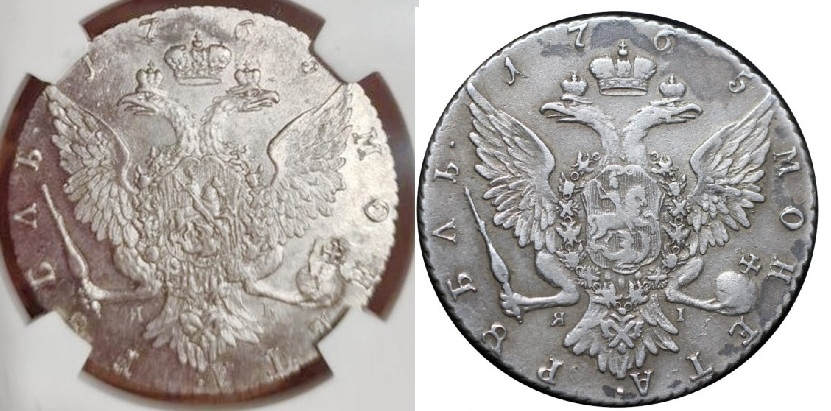 Рубль 1765 года — подделка и подмена в слабе NGS