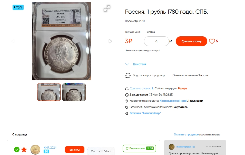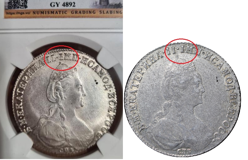 Рубль 1780 года Екатерины II — подделка в слабе NGS
