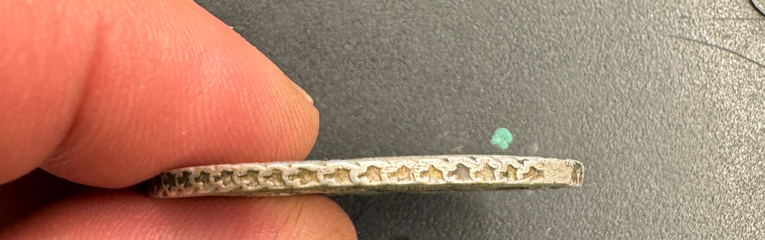 Серебряный рубль 1733 года, отчеканенный в правление императрицы Анны Иоанновны. Монета имеет признаки подлинности, однако была подвергнута агрессивной чистке, что снизило её коллекционную и рыночную стоимость. Несмотря на потертости и следы механической обработки, основные детали гурта, портрета и герба соответствуют оригинальным штемпелям того периода.