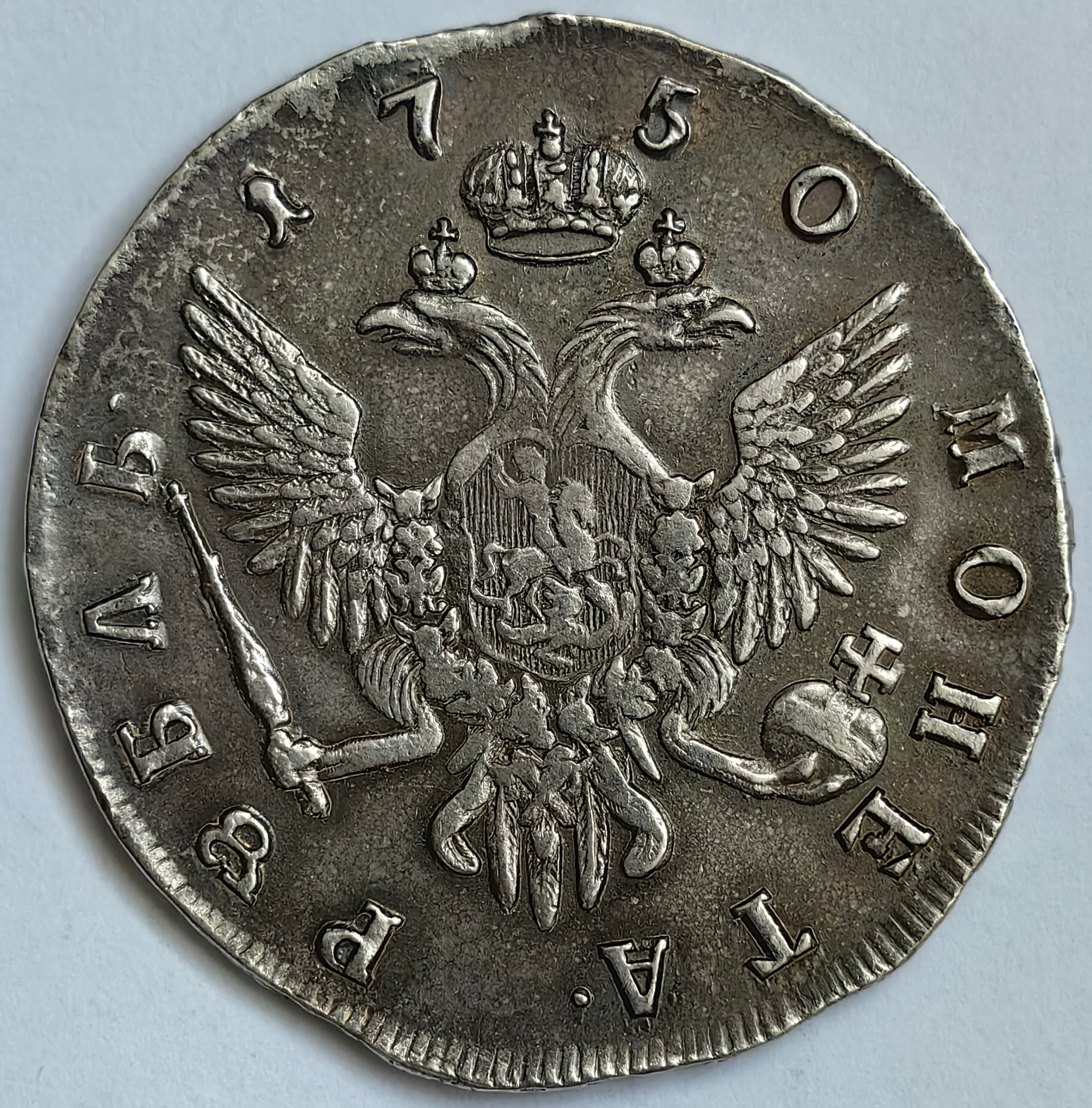 Рубль 1750 года СПБ — поддельная монета-фуфло
