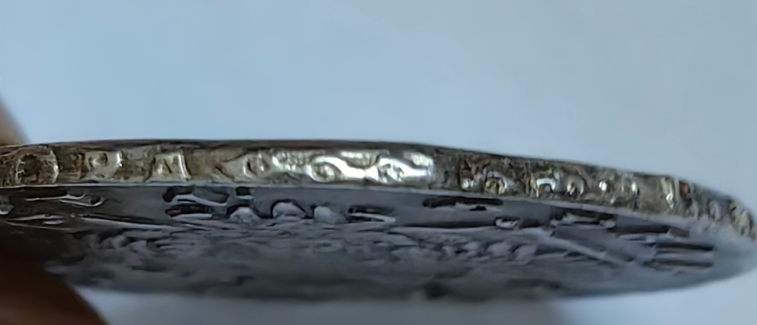 Монета представляет собой подделку серебряного рубля 1750 года, отчеканенного при императрице Елизавете Петровне на Санкт-Петербургском монетном дворе (обозначение СПБ). В оригинале это крупная серебряная монета с портретом императрицы и гербовым орлом. В данном случае автор поста прямо указывает, что это подделка, что является ключевым фактором для атрибуции.