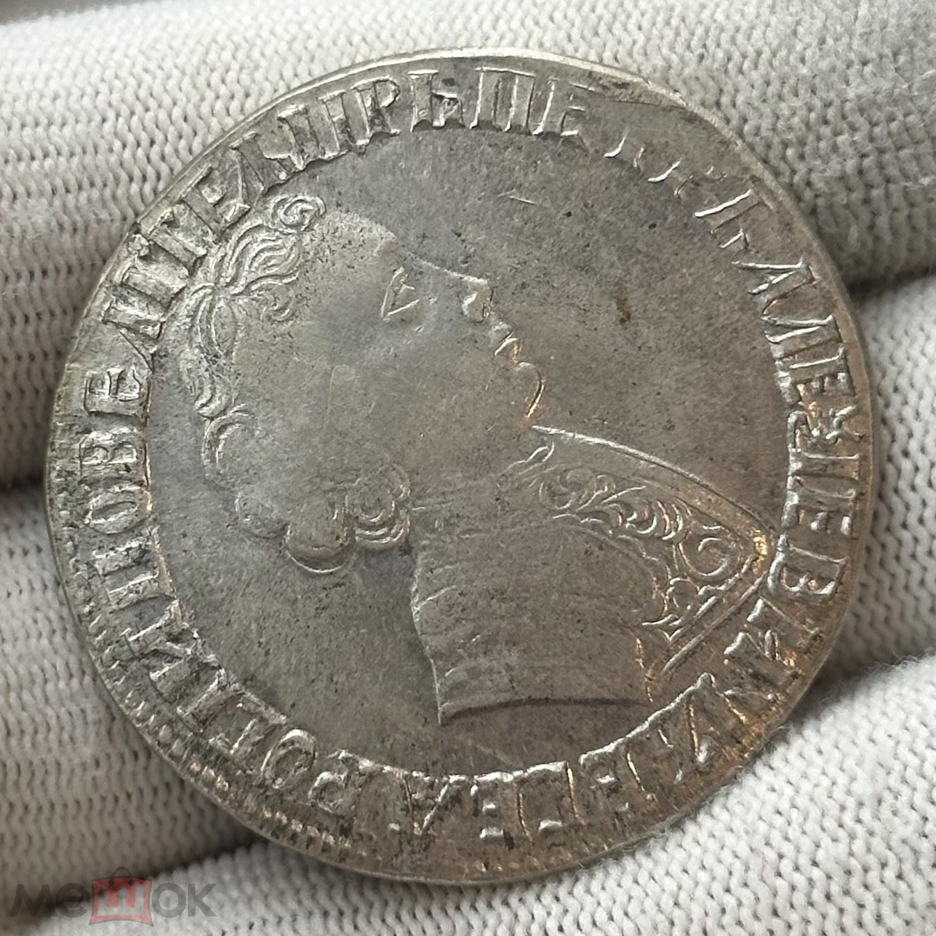 Монета представляет собой копию серебряного рубля 1705 года, отчеканенного в период правления Петра I. Оригинальные рубли этого года имеют высокую коллекционную ценность и сложны в изготовлении. В посте автор прямо указывает, что это копия, что делает её сувенирным или фальшивым экземпляром, не имеющим нумизматической ценности.