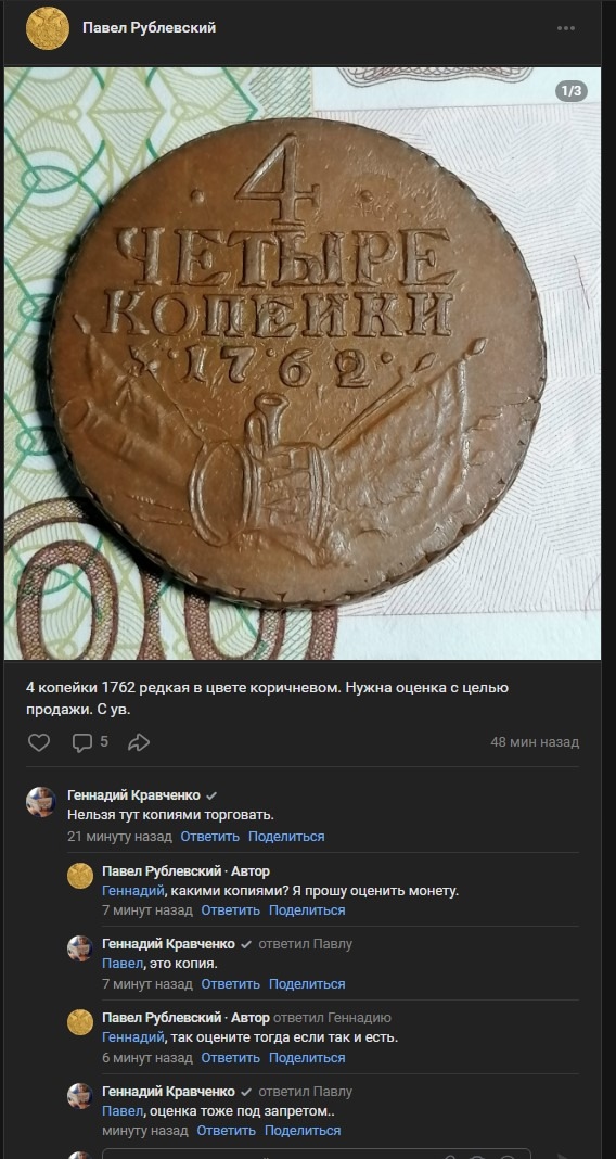 4 копейки 1762 года — подделка для начинающих коллекционеров