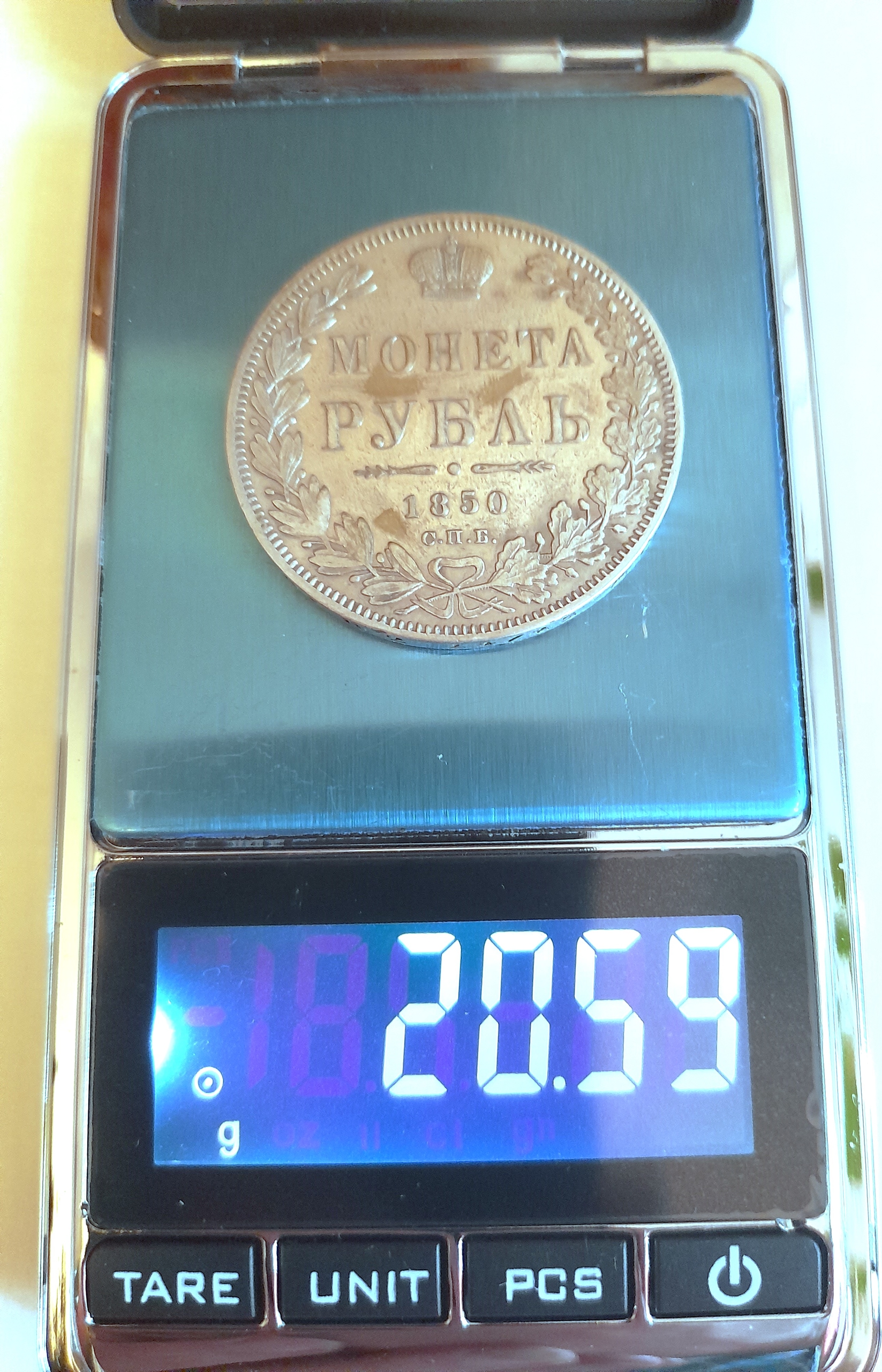 Серебряный рубль 1850 года Николая I — подлинная монета
