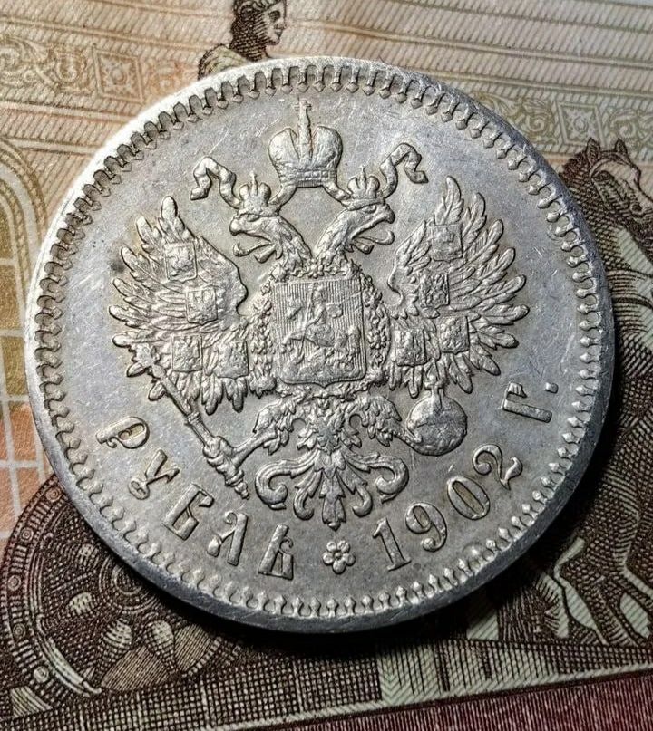 Серебряный рубль 1902 года с портретом императора Николая II. Монета вызывает споры среди коллекционеров из-за ряда признаков, указывающих на возможную подделку. Неравномерный износ деталей, странная обработка канта и общее ощущение литья ставят её подлинность под серьёзное сомнение.