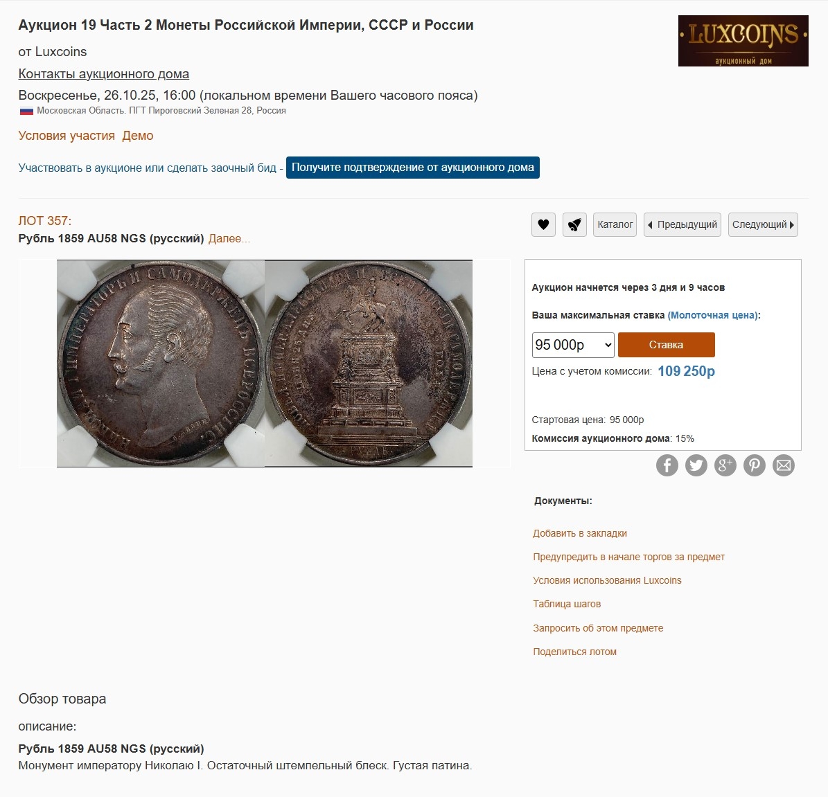 Серебряный рубль 1859 года, отчеканенный в период правления императора Александра II. Монета представлена в пластиковом слабе (капсуле) сертифицирующей компании NGS. Подлинность самой монеты вызывает вопросы у сообщества из-за отсутствия номера сертификата и сомнений в надёжности слаба.