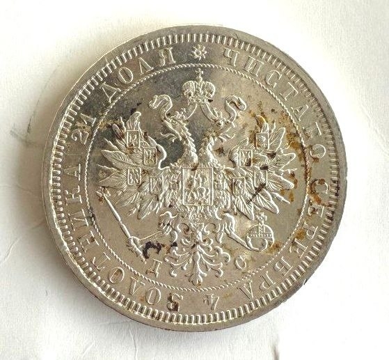 Серебряный рубль 1883 года, отчеканенный в период правления императора Александра III. Монета стандартного чекана Санкт-Петербургского монетного двора. Судя по консенсусу в комментариях, представленный экземпляр является подлинным и находится в хорошем состоянии.