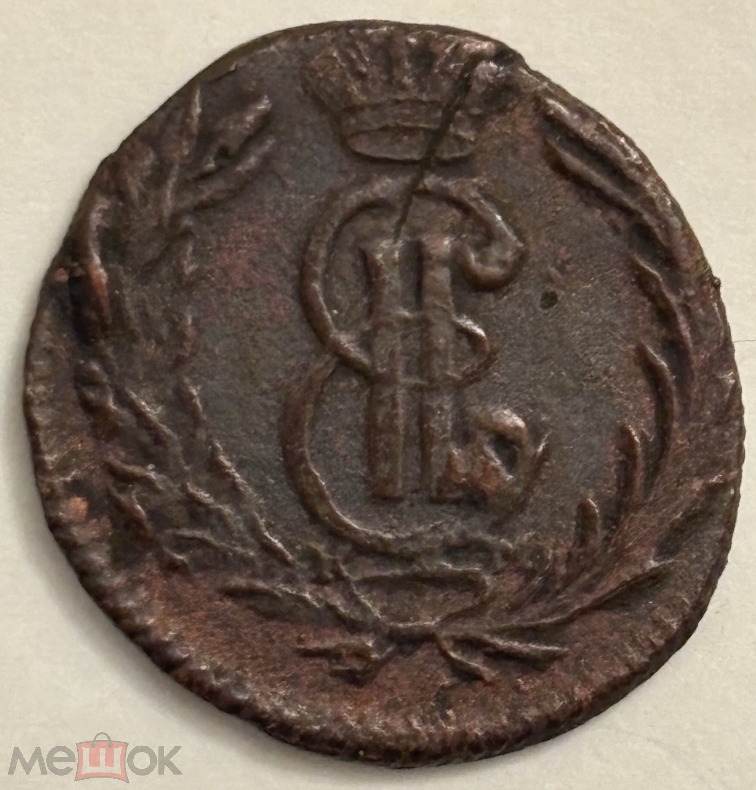 Монета представляет собой медную полушку (1/4 копейки), выпущенную в период правления Екатерины II. В оригинале такие монеты чеканились на Екатеринбургском монетном дворе. Однако, как указано в посте и подтверждено консенсусом, данная монета является копией, созданной для коллекционеров или в сувенирных целях, а не подлинным нумизматическим предметом.