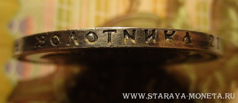 Да здесь и без гурта можно сразу определить, что копия. Шрифт не острый, городки, скипетр и т.п.