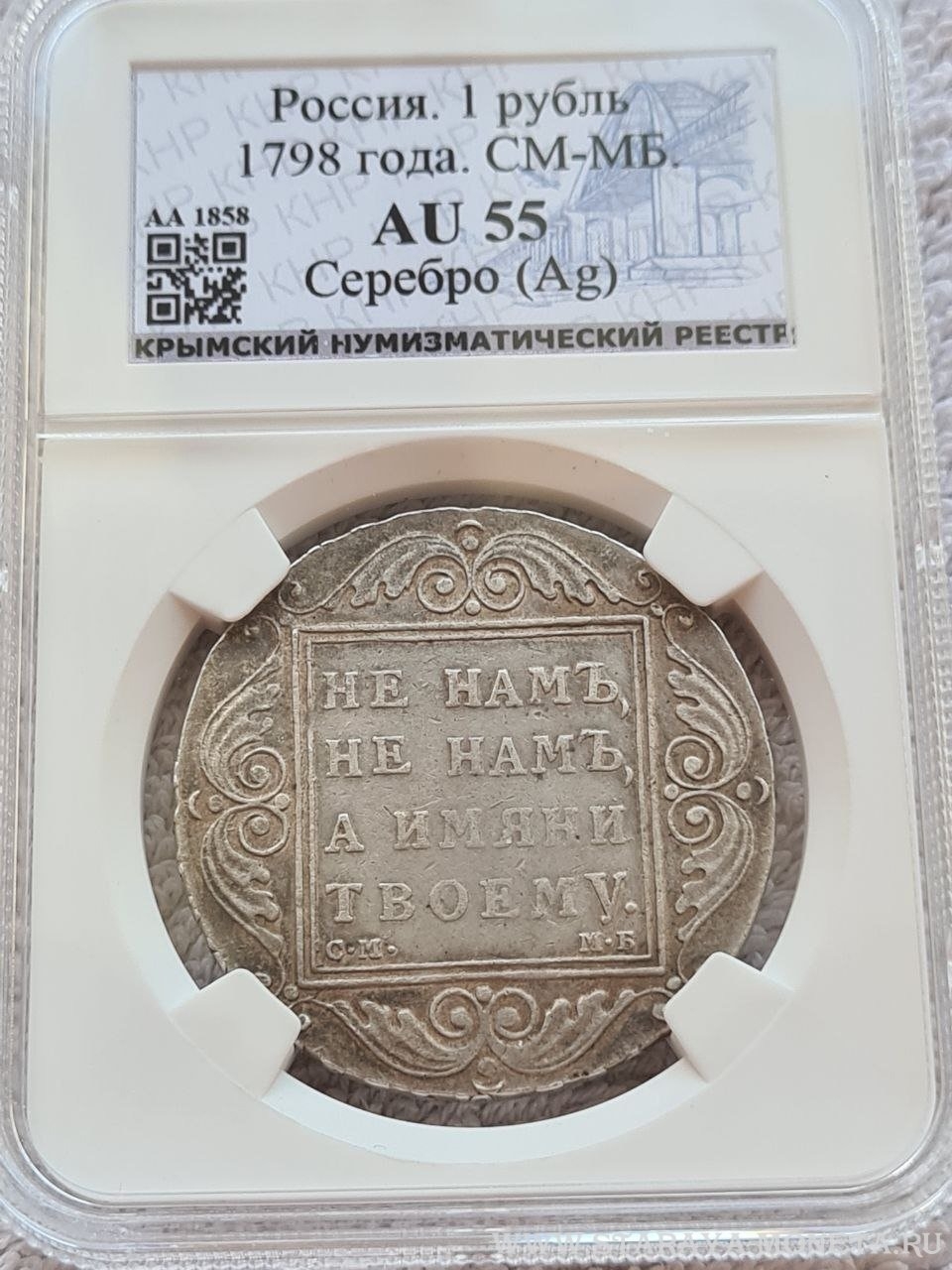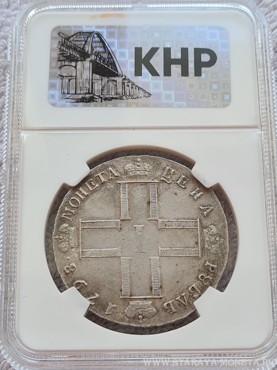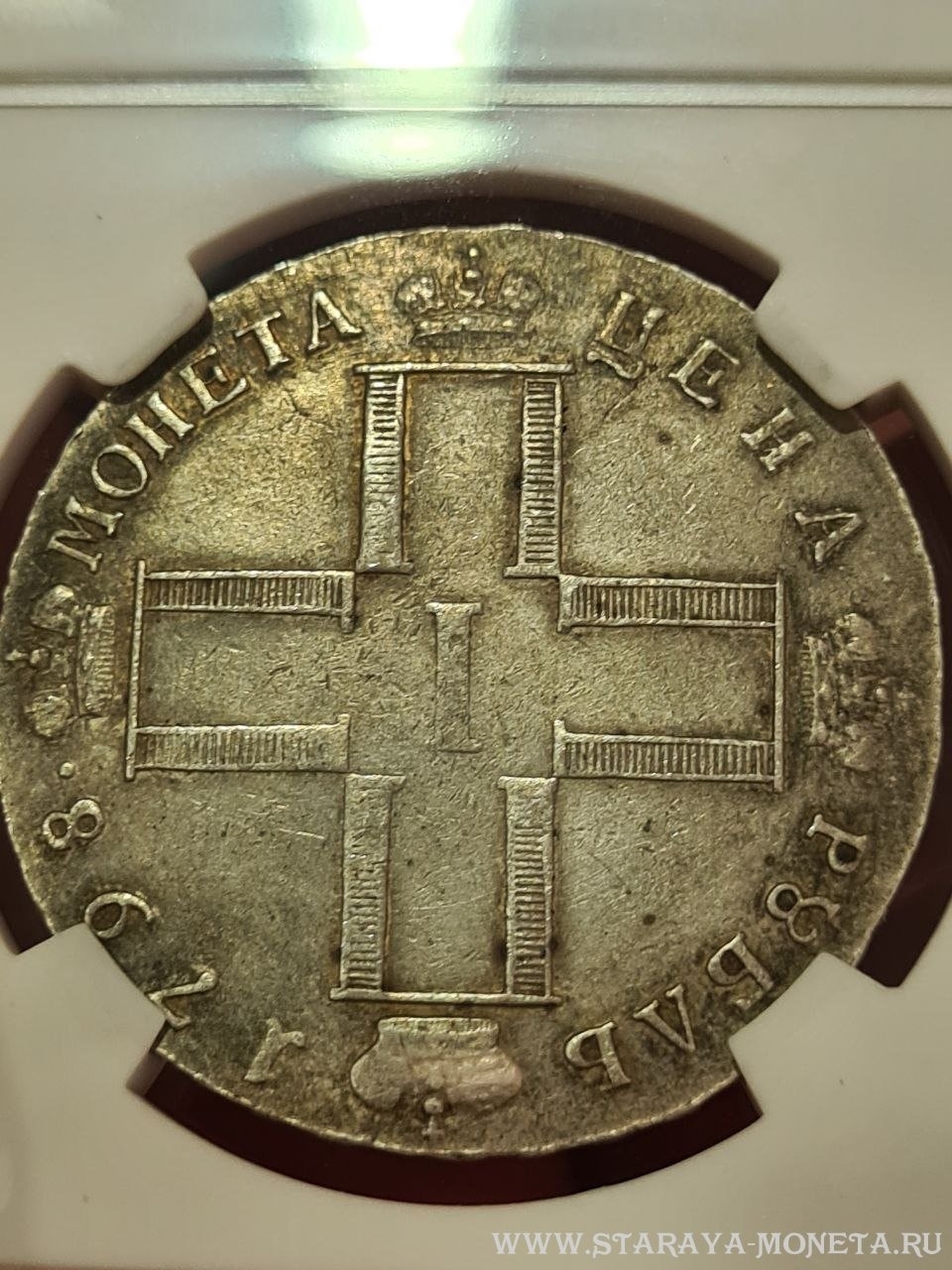 Монета представляет собой копию серебряного рубля 1798 года, отчеканенного в правление императора Павла I. В оригинале это редкая и ценная монета, однако представленный экземпляр является современной подделкой низкого качества, о чём прямо указано в посте и подтверждено комментаторами. Подобные копии часто изготавливаются в Китае и рассчитаны на неопытных коллекционеров.