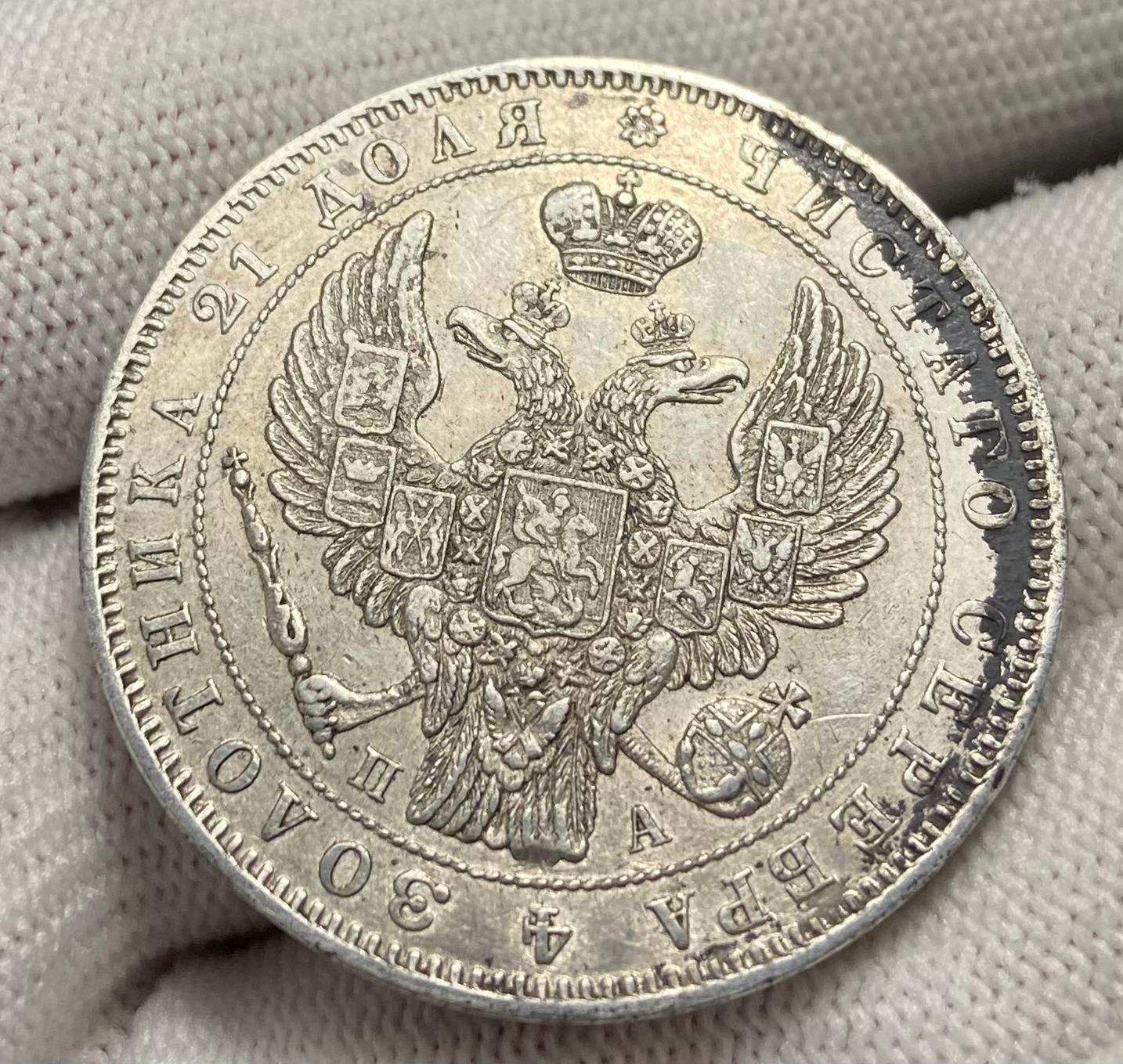 Серебряный рубль 1846 года Николая I — подлинная монета