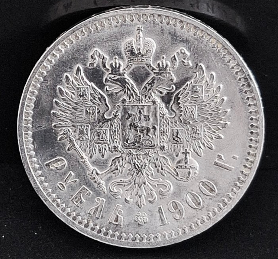 По таким фотографиям 1900 год в таком сохране не покупают. Нужны хорошие фотографии аверса, реверса и гурта по кругу. Вопросов по этим фото больше, чем ответов. Но других фотографий, как я понимаю, не будет...