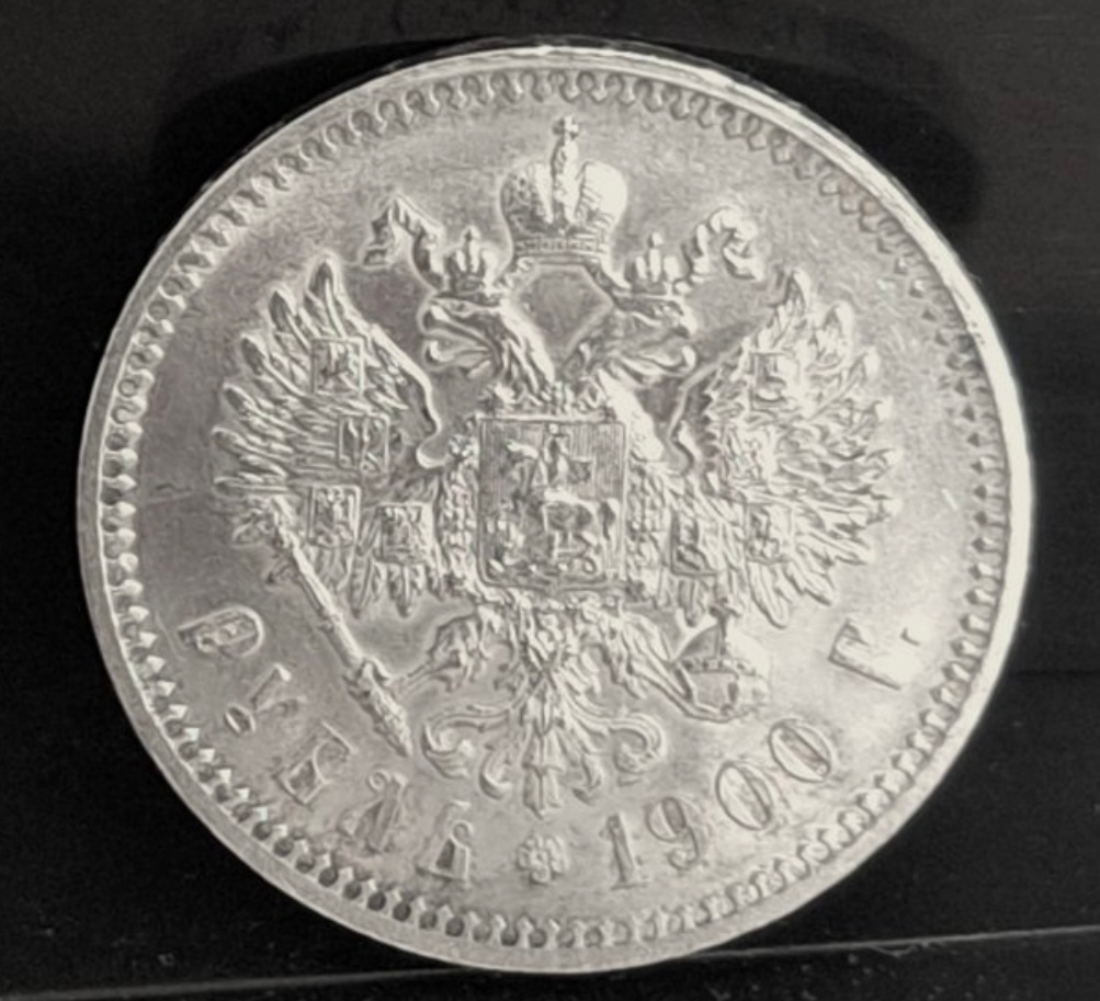 Серебряный рубль 1900 года с портретом императора Николая II. Монета периода Российской Империи, одна из самых популярных для коллекционирования и, как следствие, для подделки. Представленный экземпляр является фейком, многократно замеченным на торговых площадках.