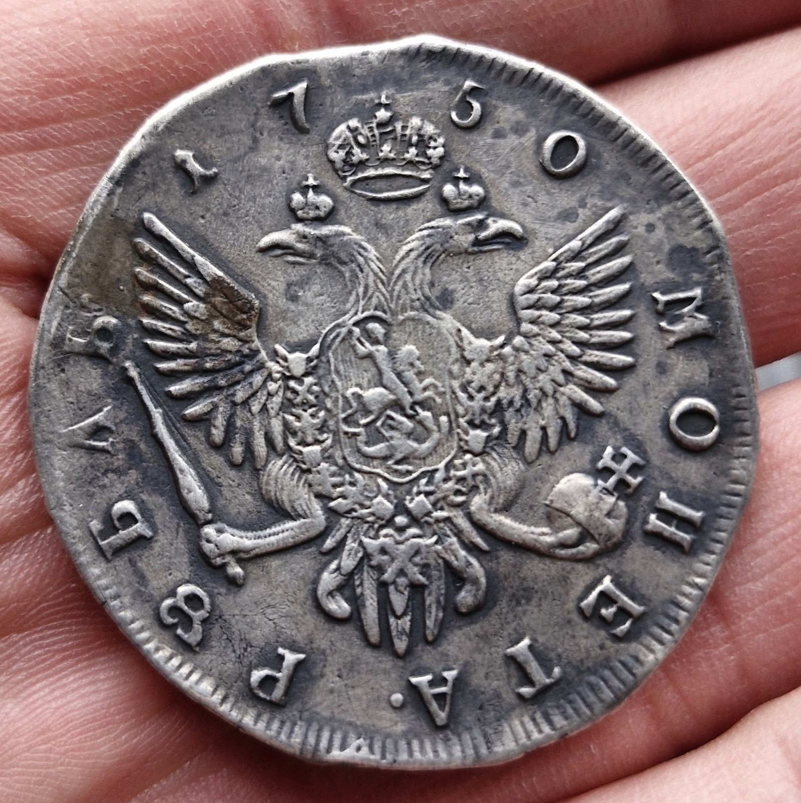 Рубль 1750 года СПБ — фейковая копия из литья