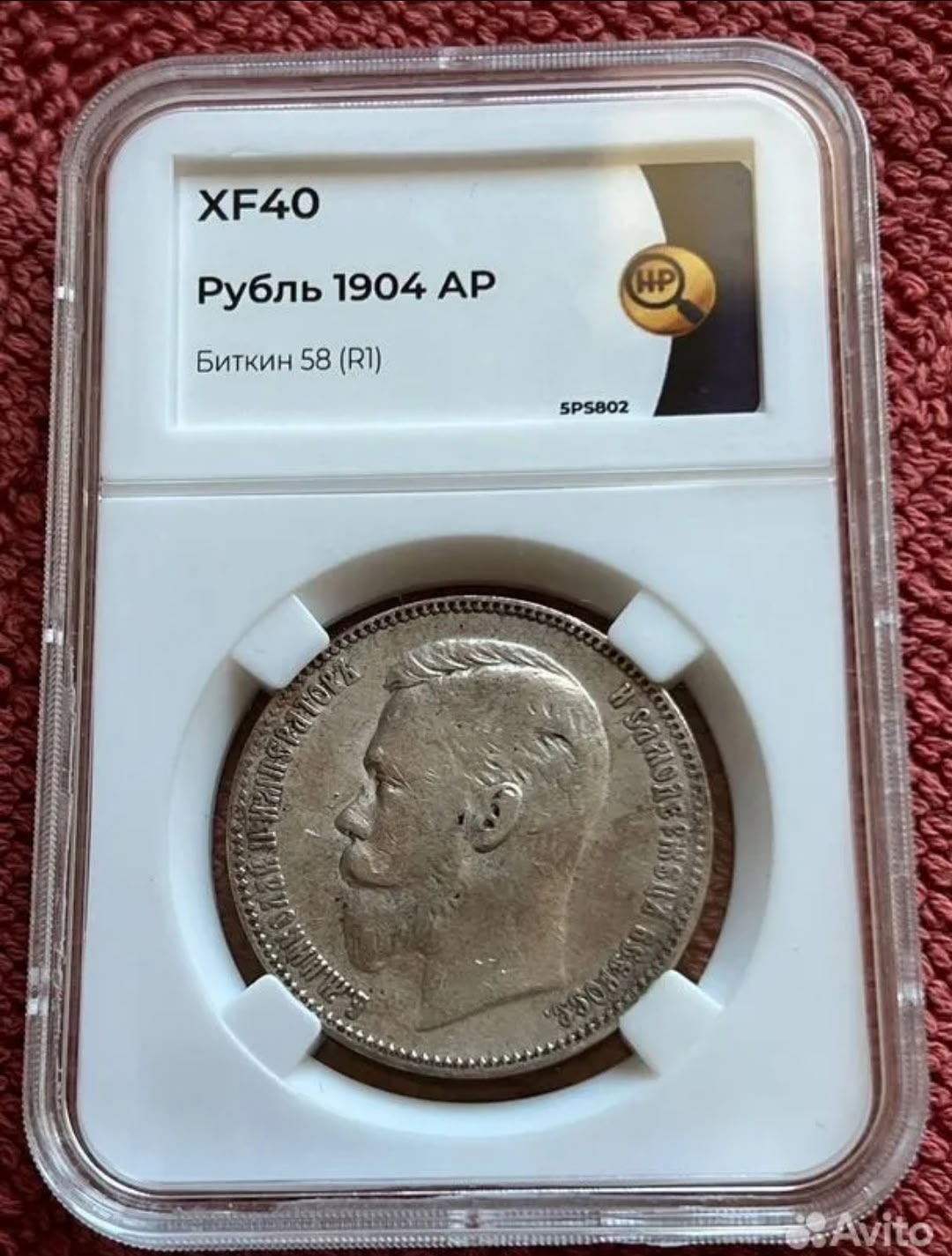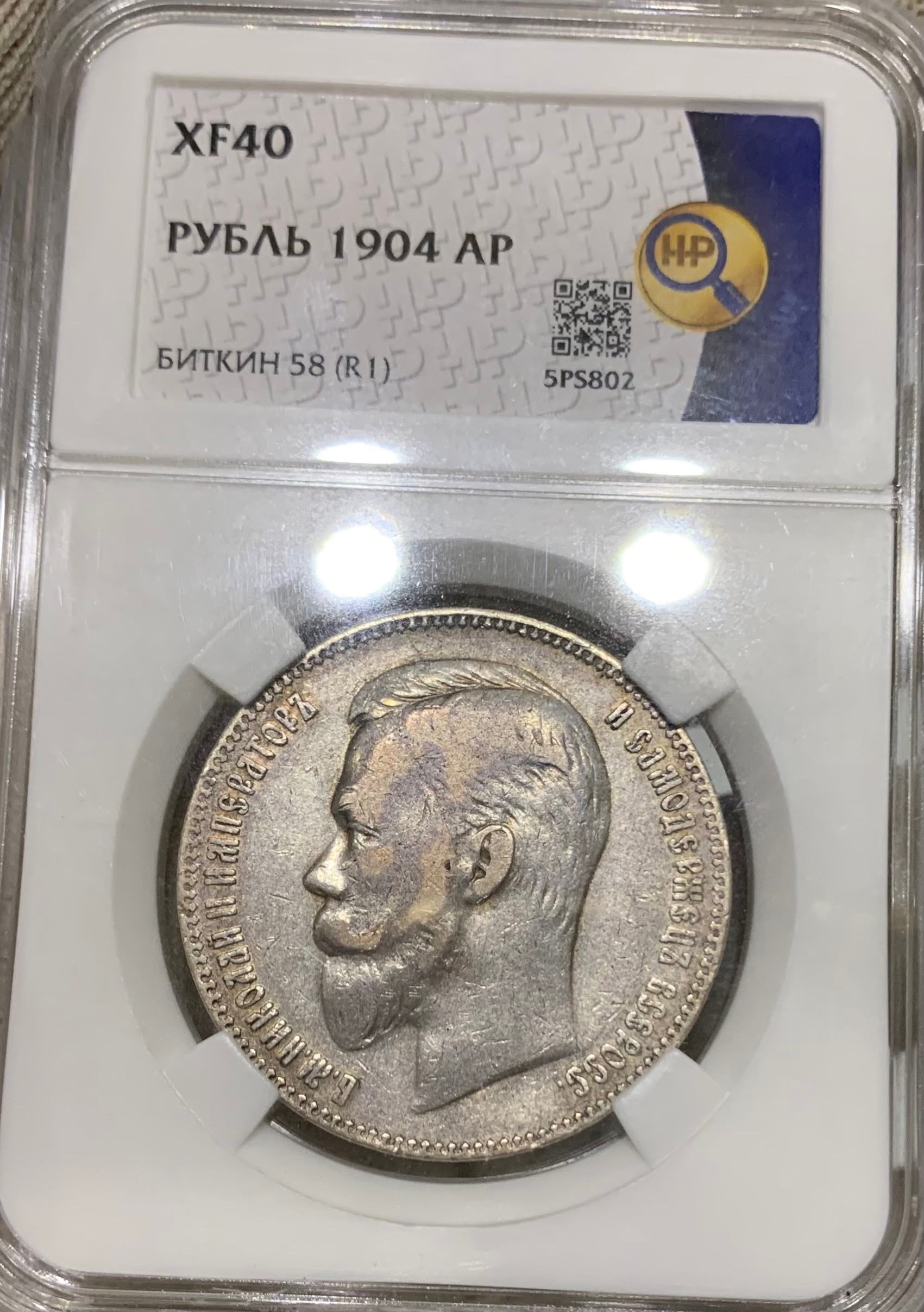 Серебряный рубль 1891 года, отчеканенный в правление императора Александра III. Монета представлена вместе с фальсифицированным сертификатом (слабом) грейдинговой компании, что является признаком целенаправленной подделки. Отличия видны в деталях монеты и в оформлении сертификата (другая бумага, отсутствие QR-кода).