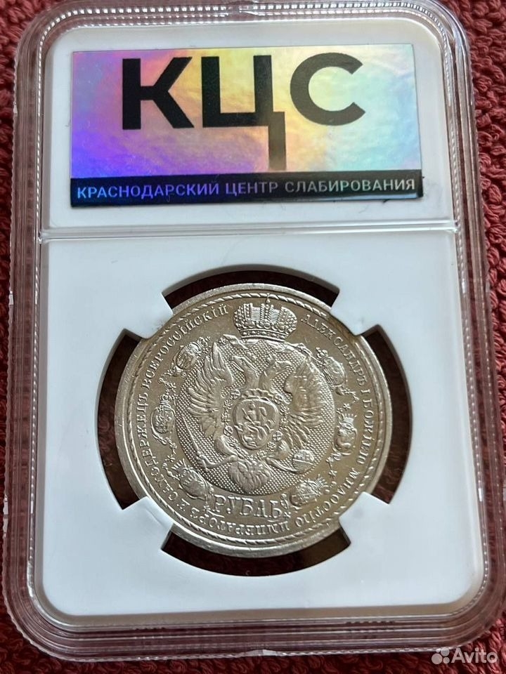 Монета представляет собой юбилейный рубль 1912 года, выпущенный в честь 100-летия победы в Отечественной войне 1812 года. На аверсе изображён портрет императора Николая II, на реверсе — манифест и надпись «Сей Славный Год». Представленный экземпляр является низкокачественной подделкой, что подтверждается сообществом нумизматов.