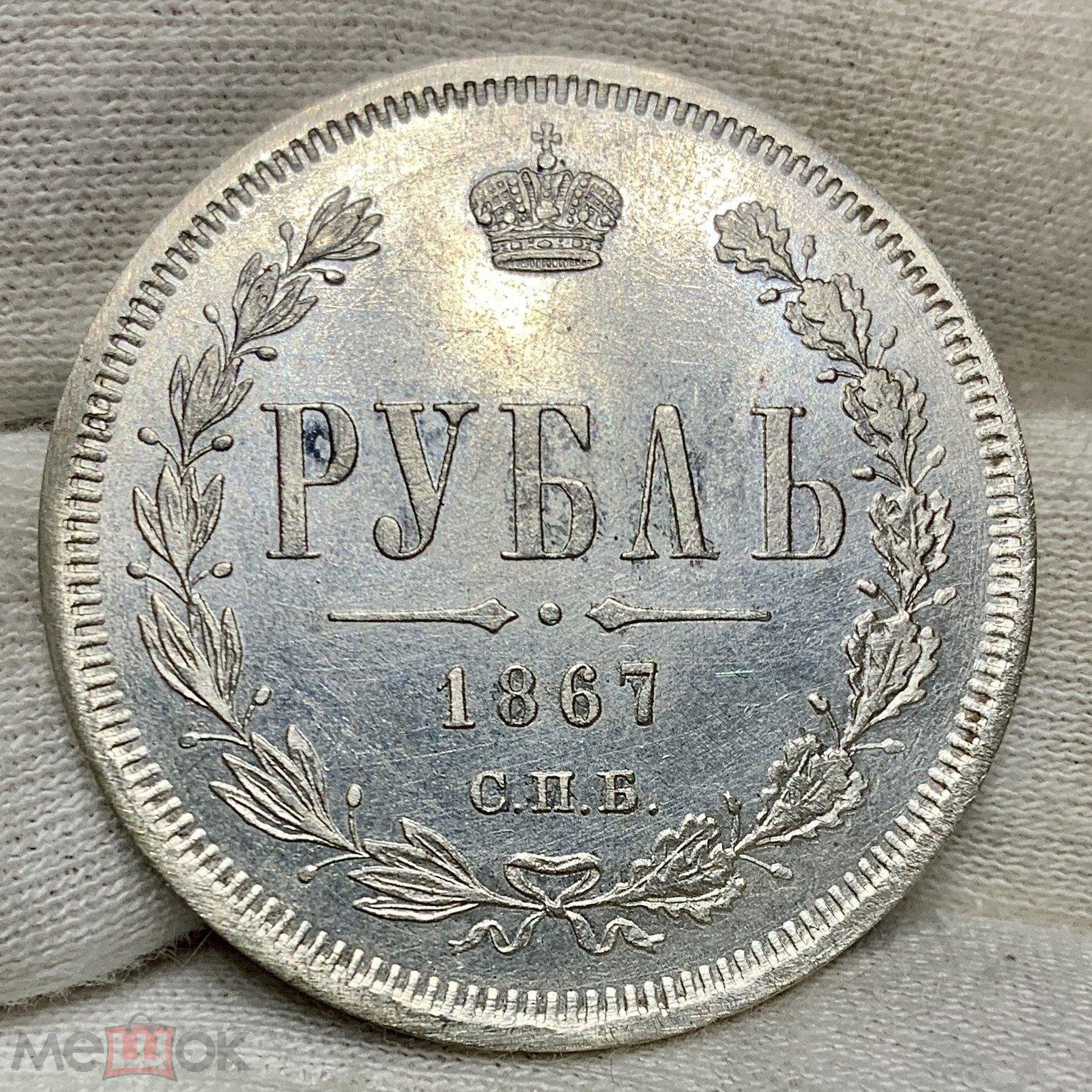 Монета представляет собой копию серебряного рубля 1867 года, отчеканенного в период правления императора Александра II. Оригинальные монеты этого типа имеют высокую коллекционную ценность, что делает их частой мишенью для фальсификаторов. Владелец поста прямо указал, что это копия, что подтверждается отсутствием аргументов в защиту подлинности в комментариях.