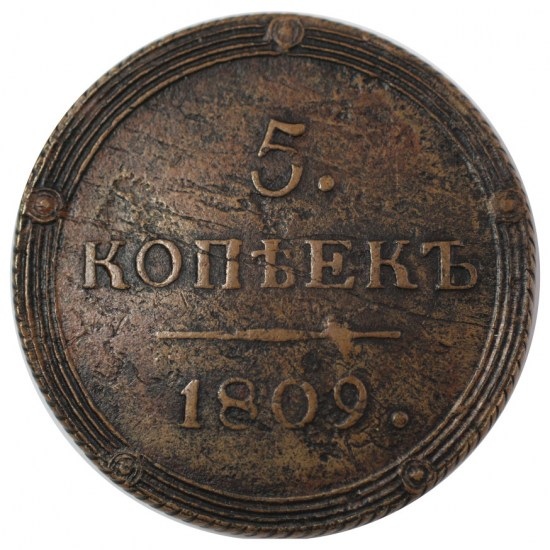 Монета представляет собой копию медных 5 копеек периода правления Александра I, отчеканенных на Екатеринбургском монетном дворе (знак «ЕМ»). Оригинальные монеты этого типа чеканились большими тиражами и являются распространёнными. Данный экземпляр является современной репликой, созданной для коллекционеров и исторического изучения.