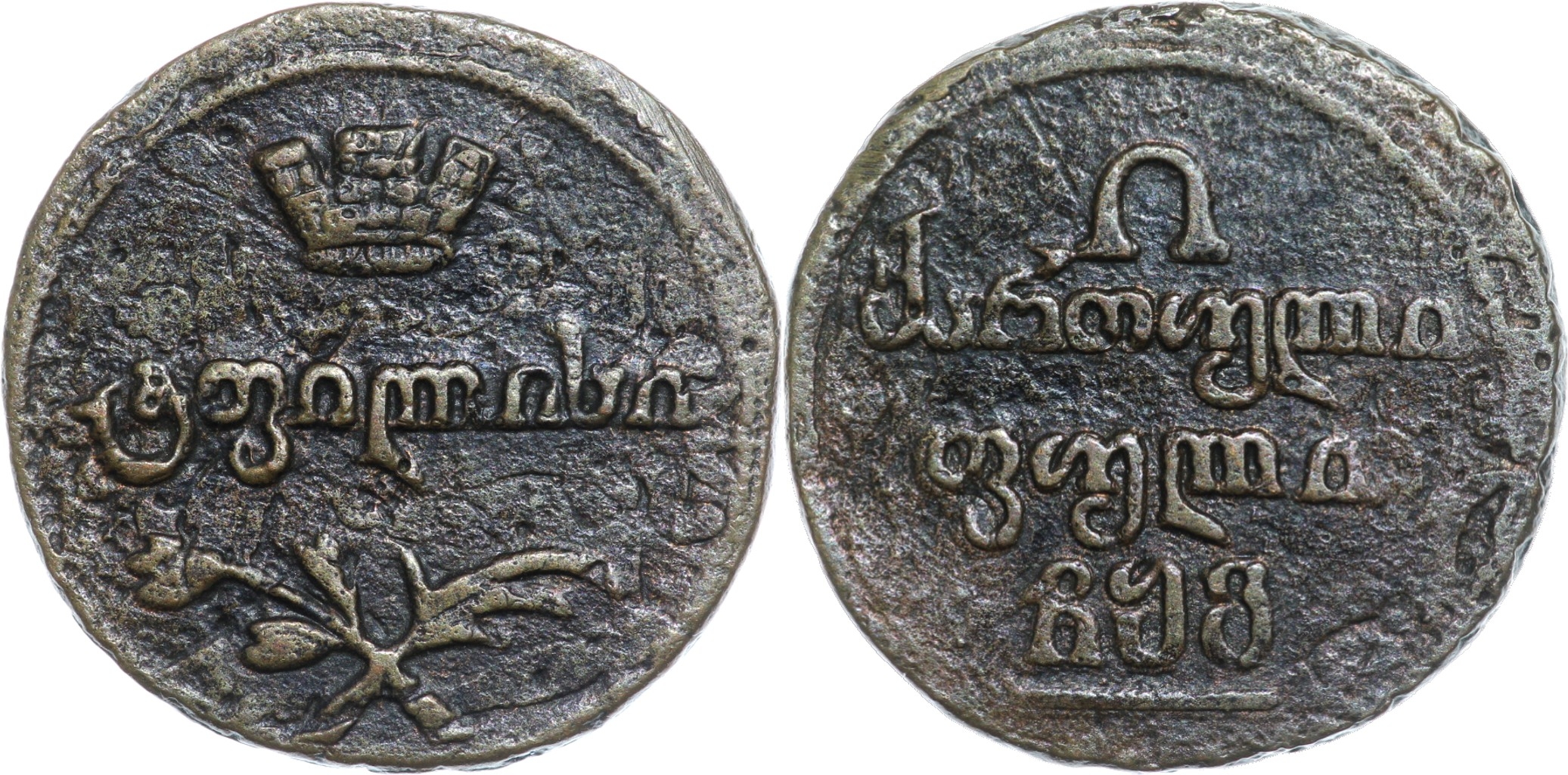 Представлены две медные монеты Российской Империи: 2 копейки 1802 года (чекан Екатеринбургского монетного двора, «ЕМ») и полушка 1797 года (чекан периода Павла I). Обе монеты являются современными поддельными копиями низкого качества, отлитыми, вероятно, в Китае. Их выдают грубые детали, неправильный металл и характерные для литья дефекты поверхности.