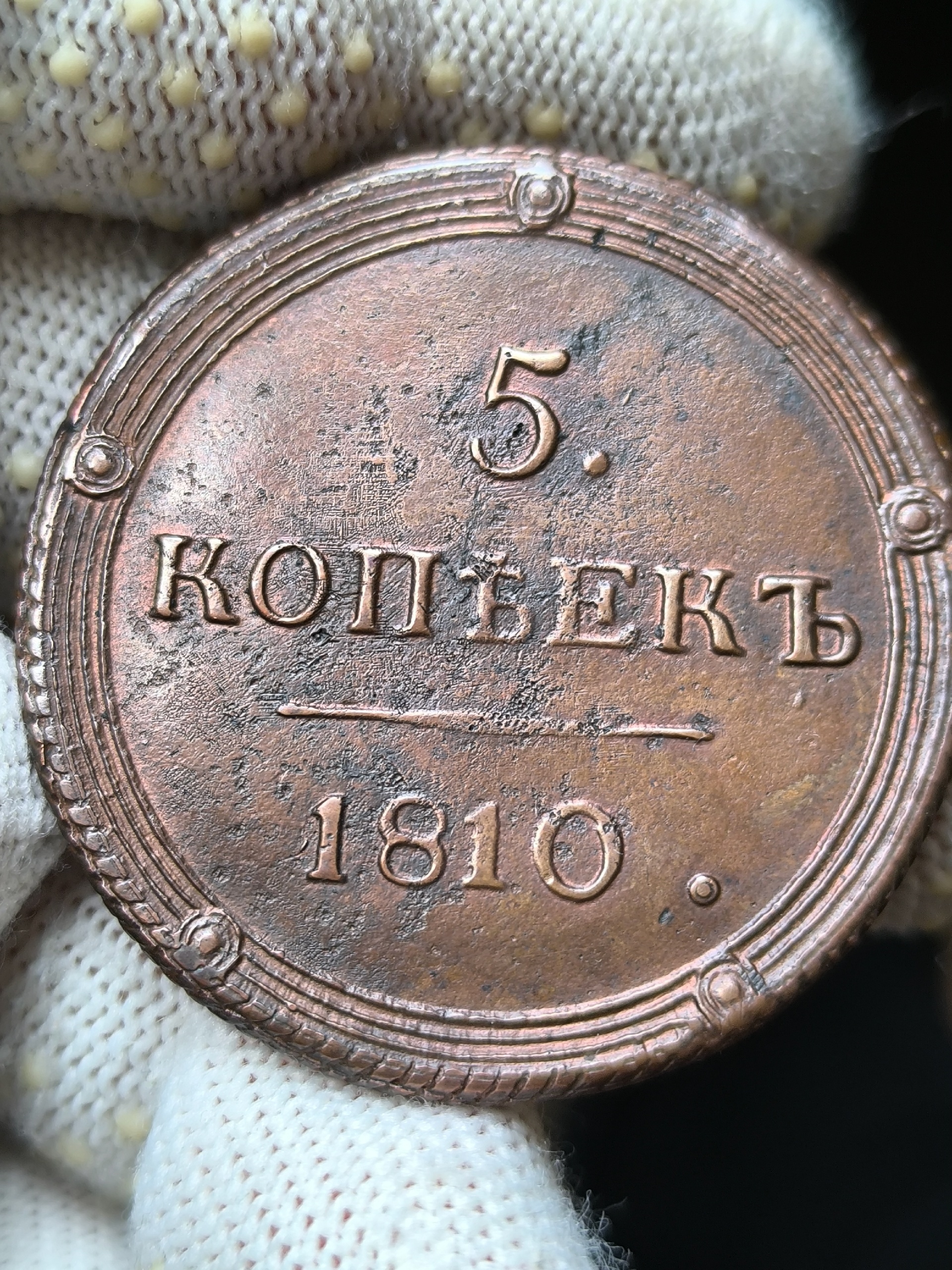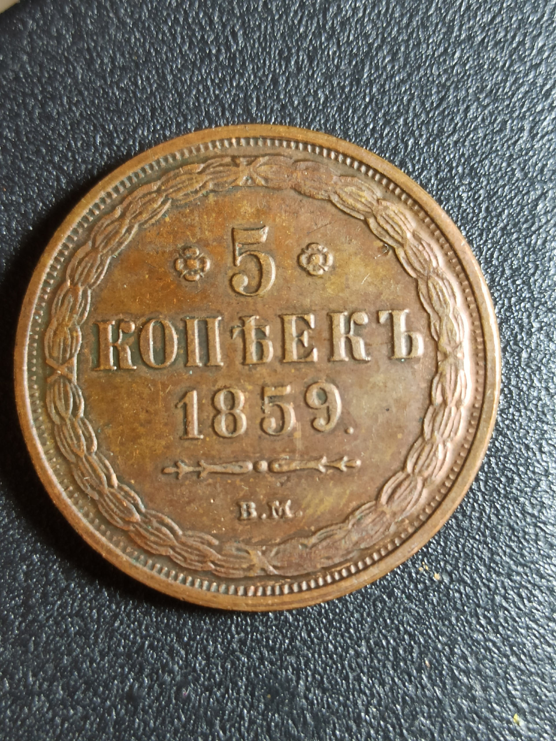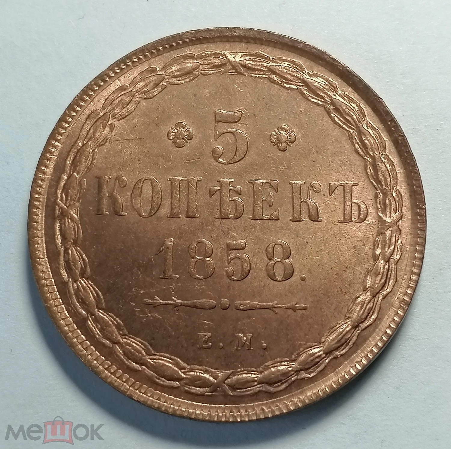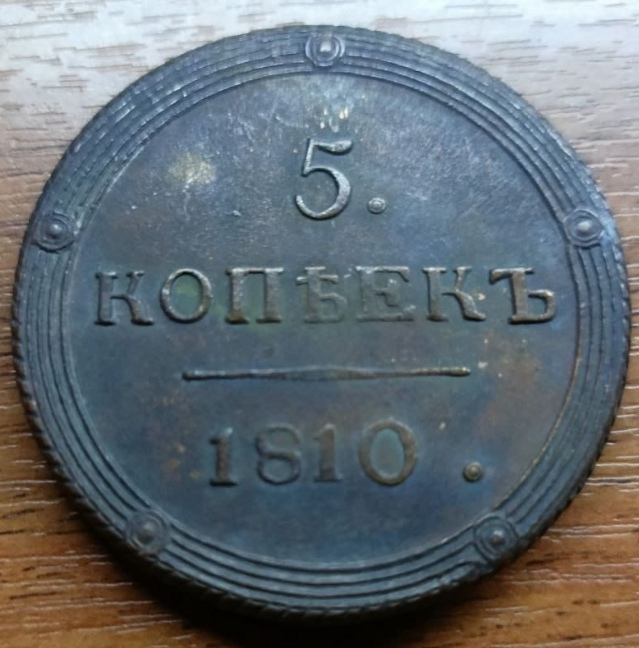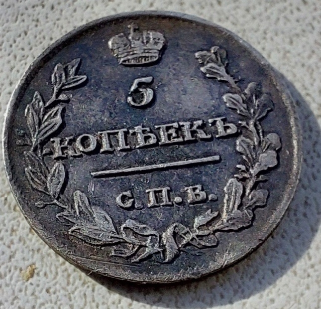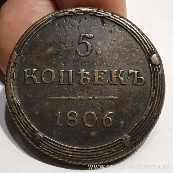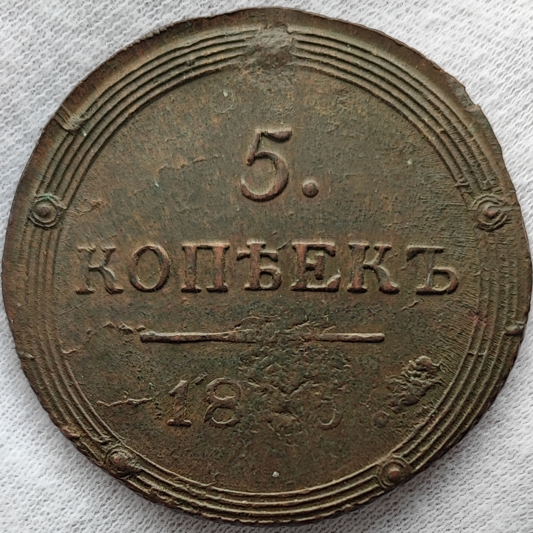 Монета представляет собой копию медных 5 копеек периода правления Александра I, отчеканенных на Екатеринбургском монетном дворе (обозначение «ЕМ»). Оригинальные монеты этого типа чеканились крупными тиражами и являются массовыми. Данный экземпляр является заведомой репликой, о чём прямо указано в описании поста.