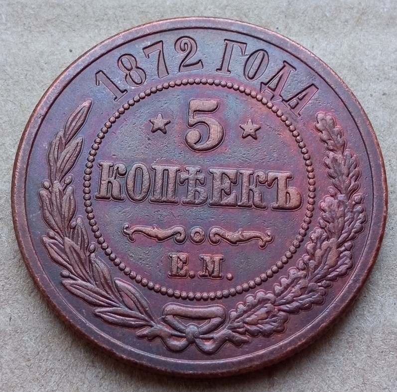 5 копеек 1872 года ЕМ — сувенирная копия или подделка?