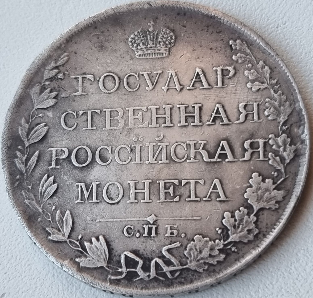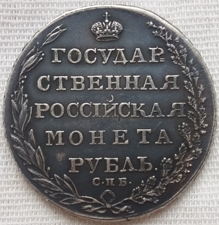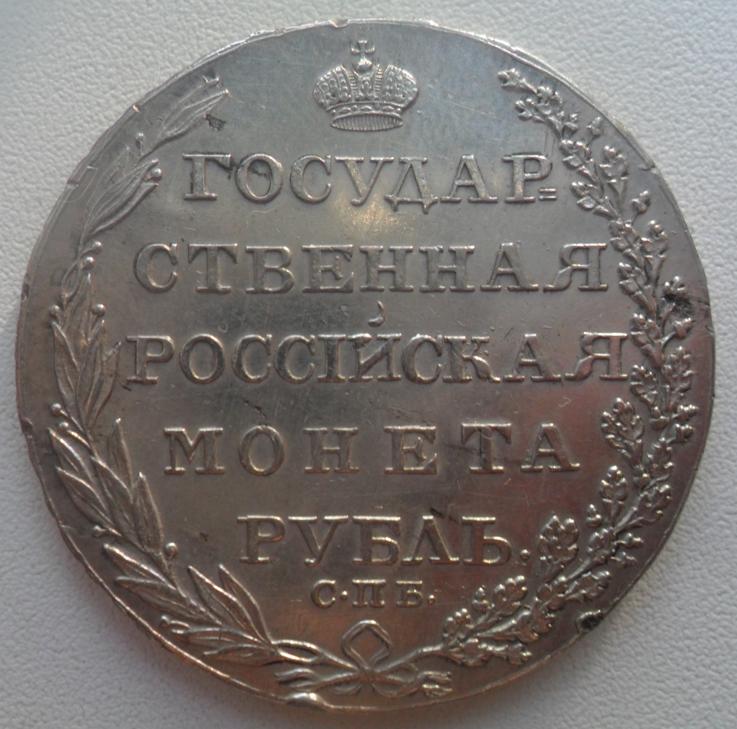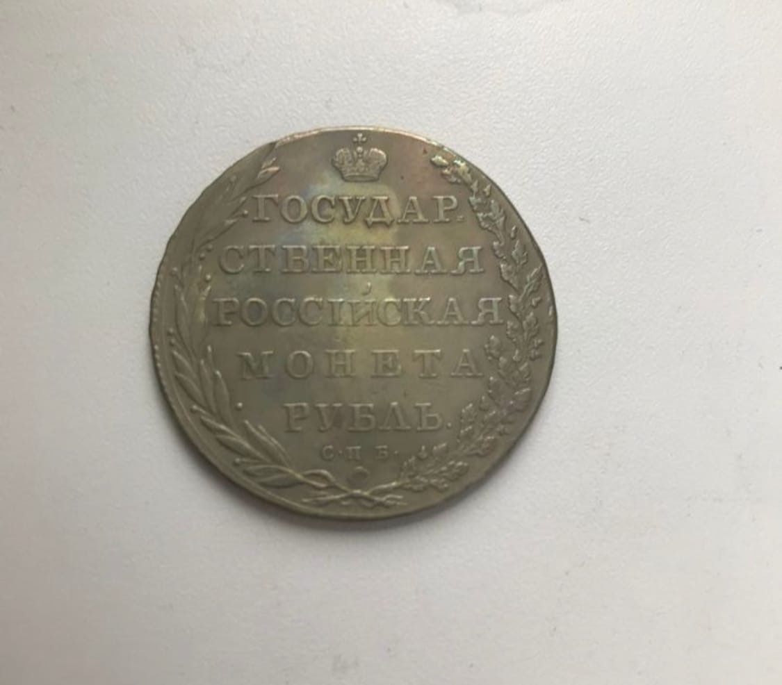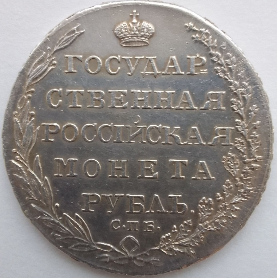 Монета номиналом 1 рубль, отчеканенная в 1803 году в правление императора Александра I. В оригинале это серебряная монета, однако представленный экземпляр является подделкой. Автор поста прямо указывает на это, а единственный комментарий предполагает изготовление из нехарактерного для оригинала металла — мельхиора.