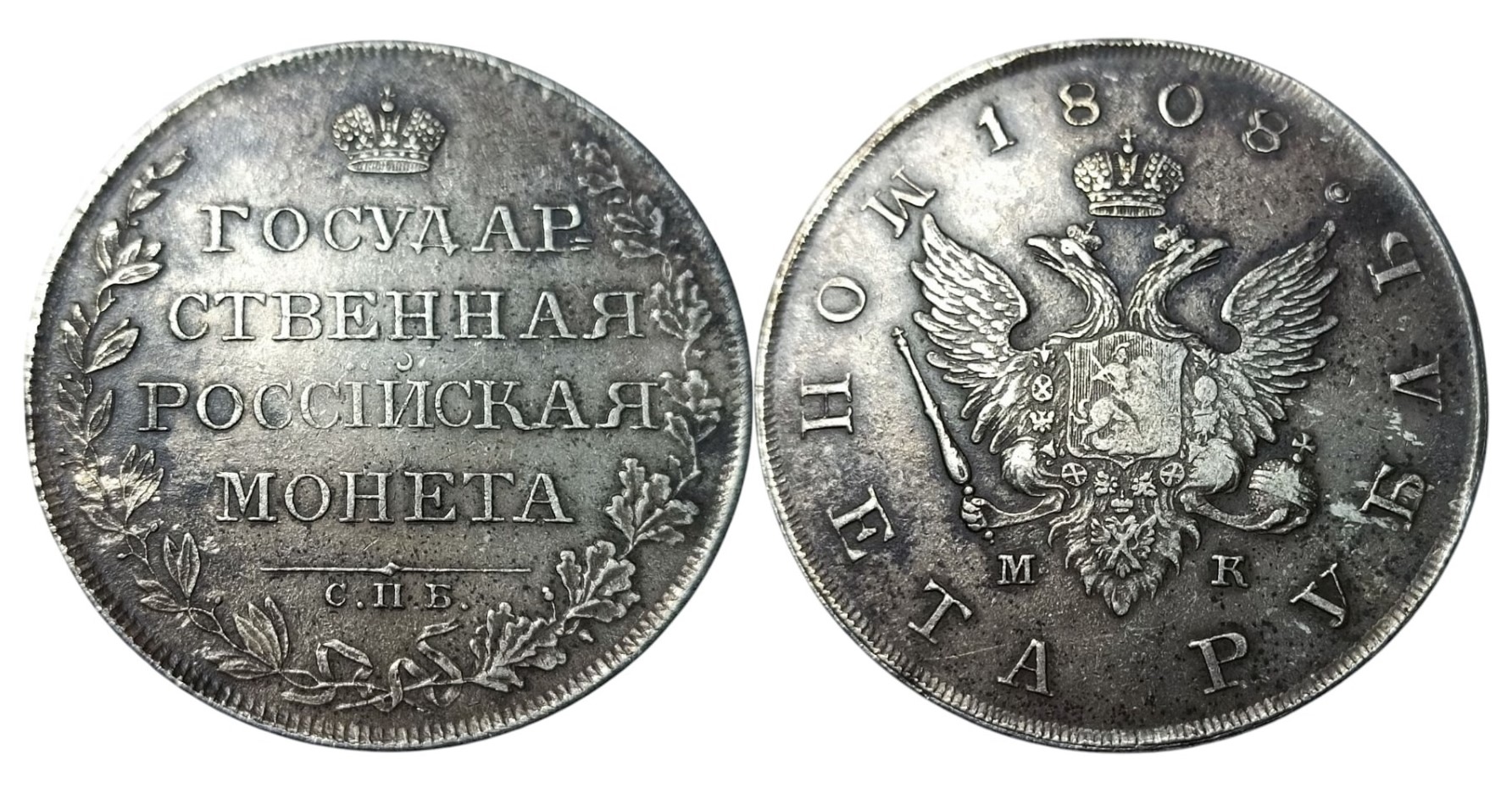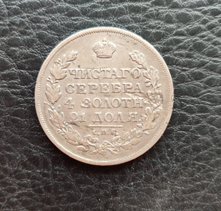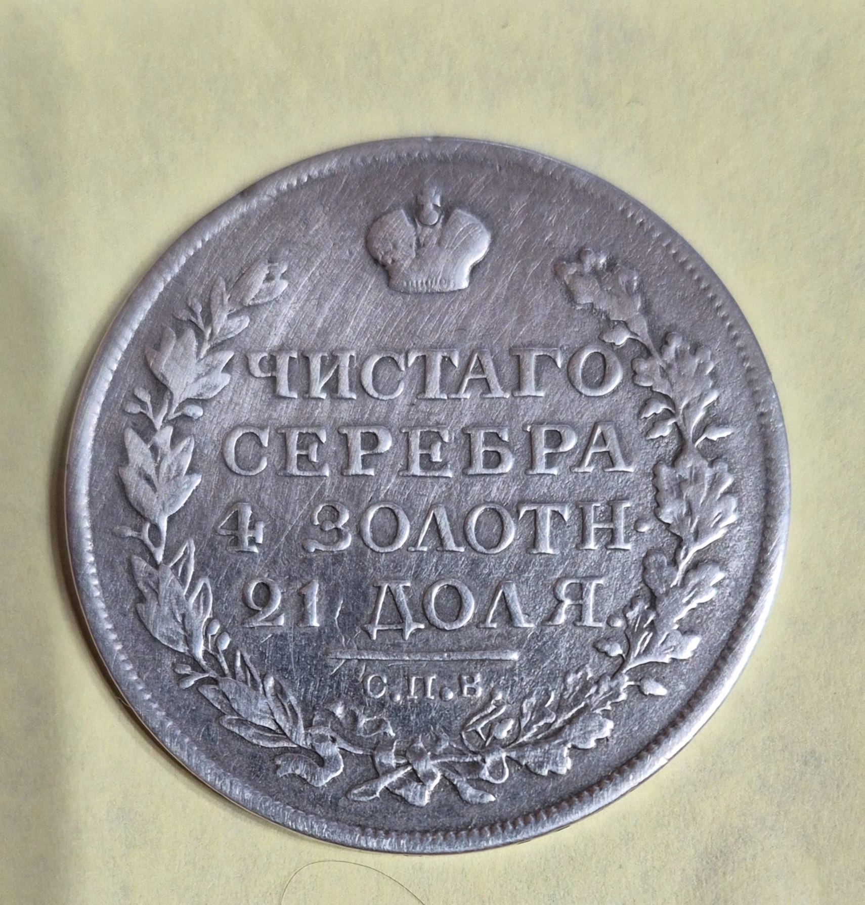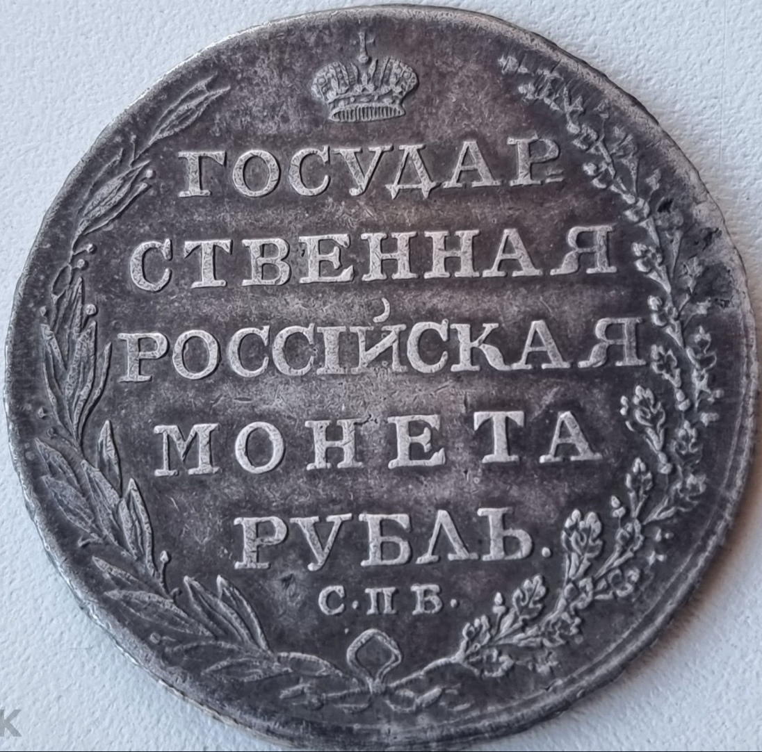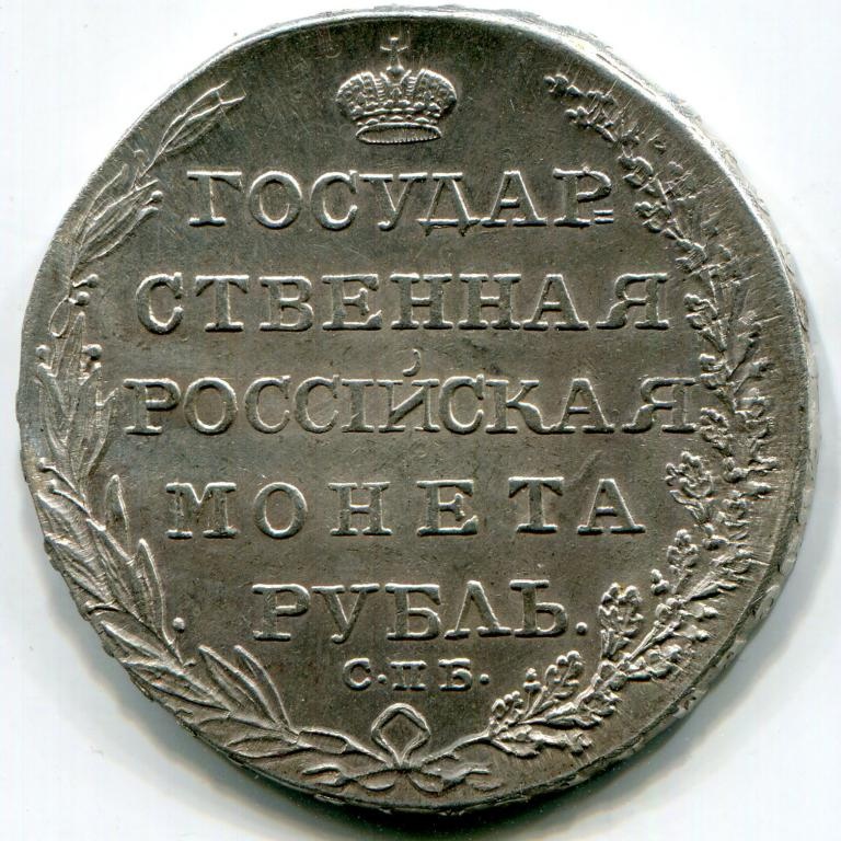 Монета номиналом 1 рубль, отчеканенная в 1803 году в правление императора Александра I. В оригинале это серебряная монета, однако представленный экземпляр является подделкой. Автор поста прямо указывает на это, а единственный комментарий предполагает изготовление из нехарактерного для оригинала металла — мельхиора.