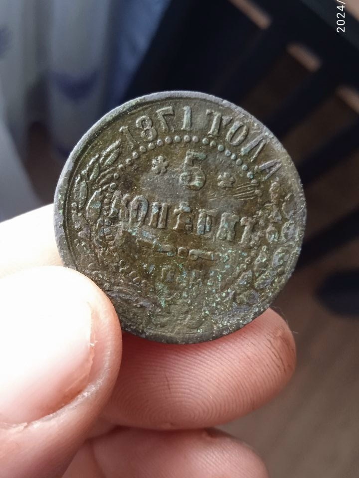 Медная монета 5 копеек 1871 года, отчеканенная в период правления Александра II. Представленный экземпляр является не оригинальной монетой Санкт-Петербургского монетного двора, а фальшивкой, изготовленной в ущерб денежному обращению Российской Империи. Судя по контексту обсуждения, это может быть либо современная копия, либо подделка, созданная в тот же исторический период.