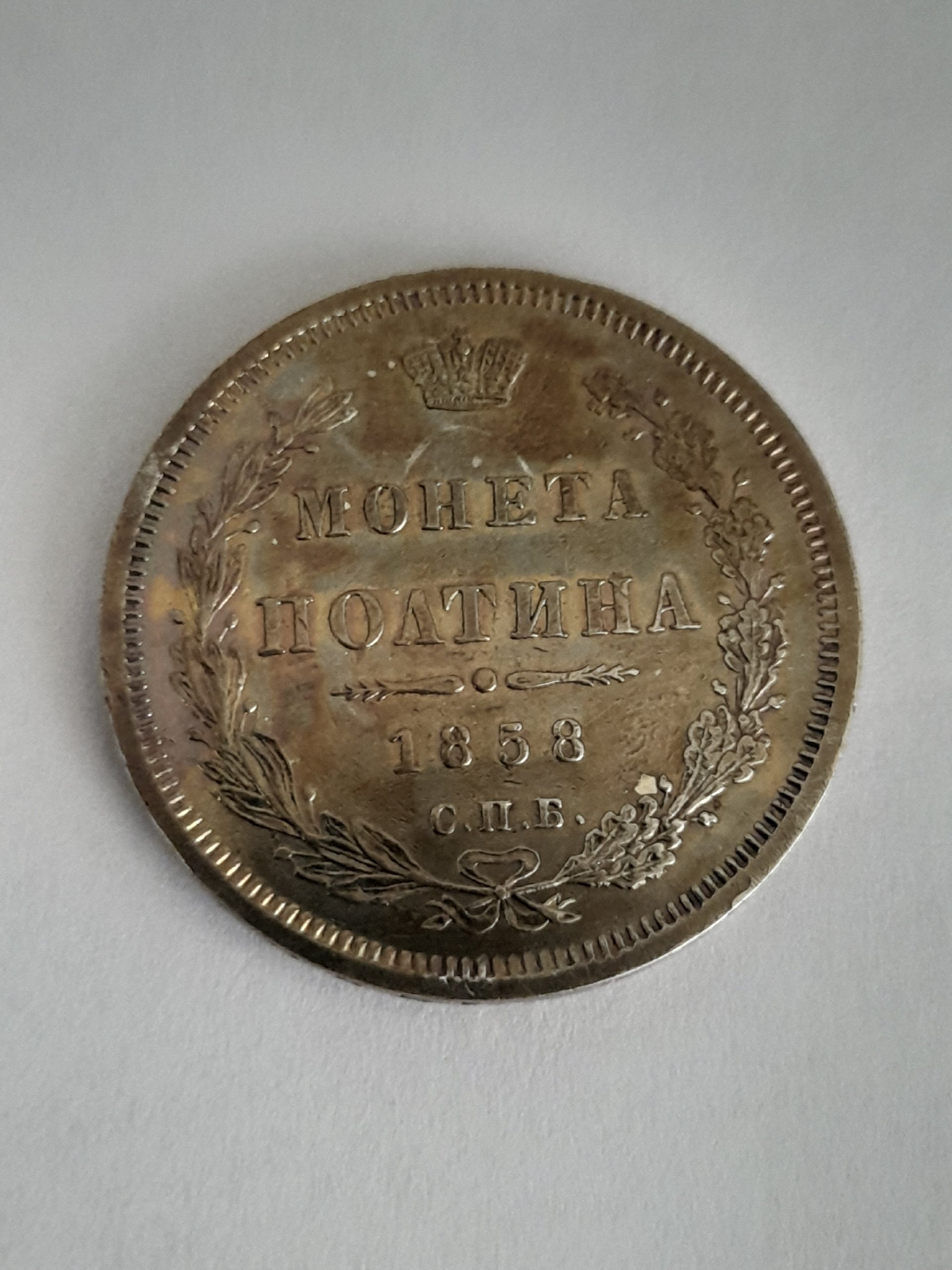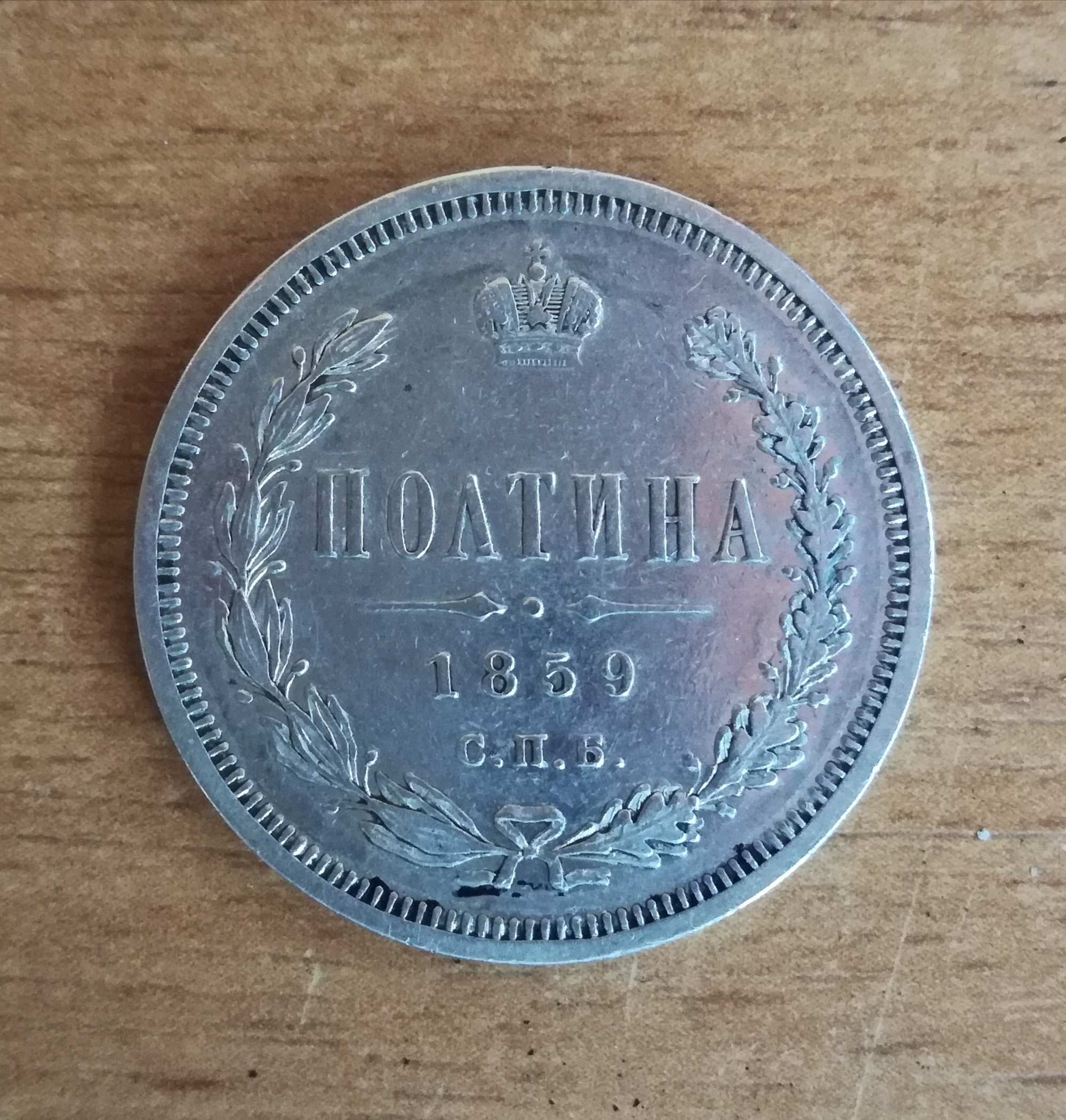 Полтина 1859 года СПБ — подлинная монета с признаками реставрации