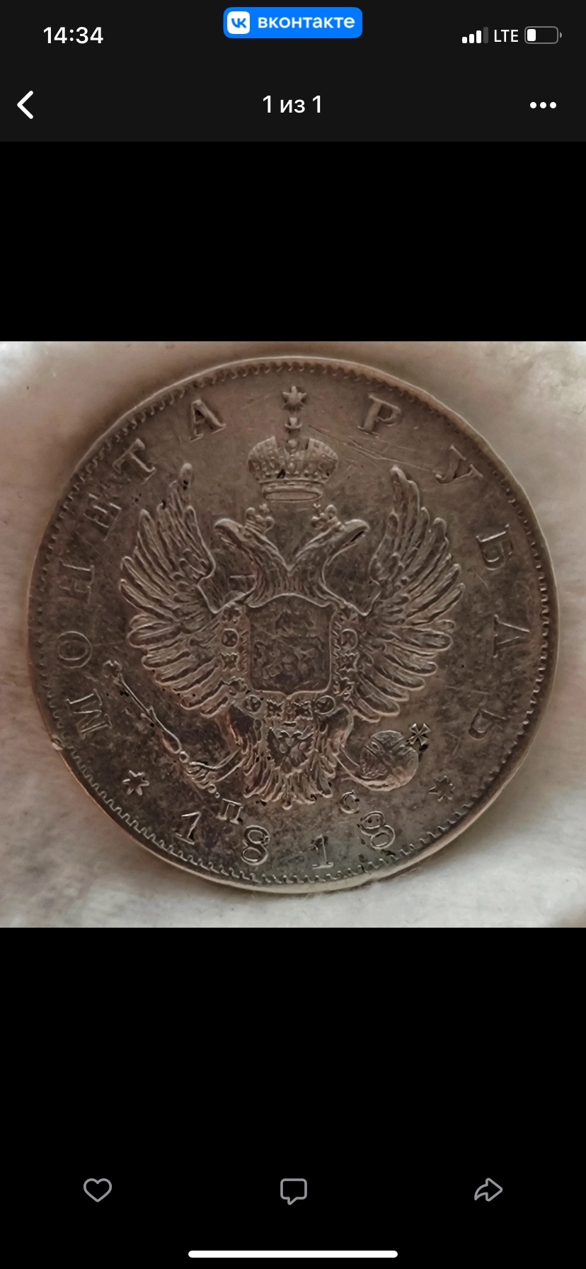 Монета представляет собой рубль 1801 года, отчеканенный в начале правления императора Александра I. Автор поста в VK прямо указывает, что это подделка. В отсутствие комментариев и фотографий для экспертизы, вердикт основан на заявлении автора, который, вероятно, выявил признаки фальсификации, такие как несоответствие штемпелей, металла или деталей гурта оригинальным экземплярам.