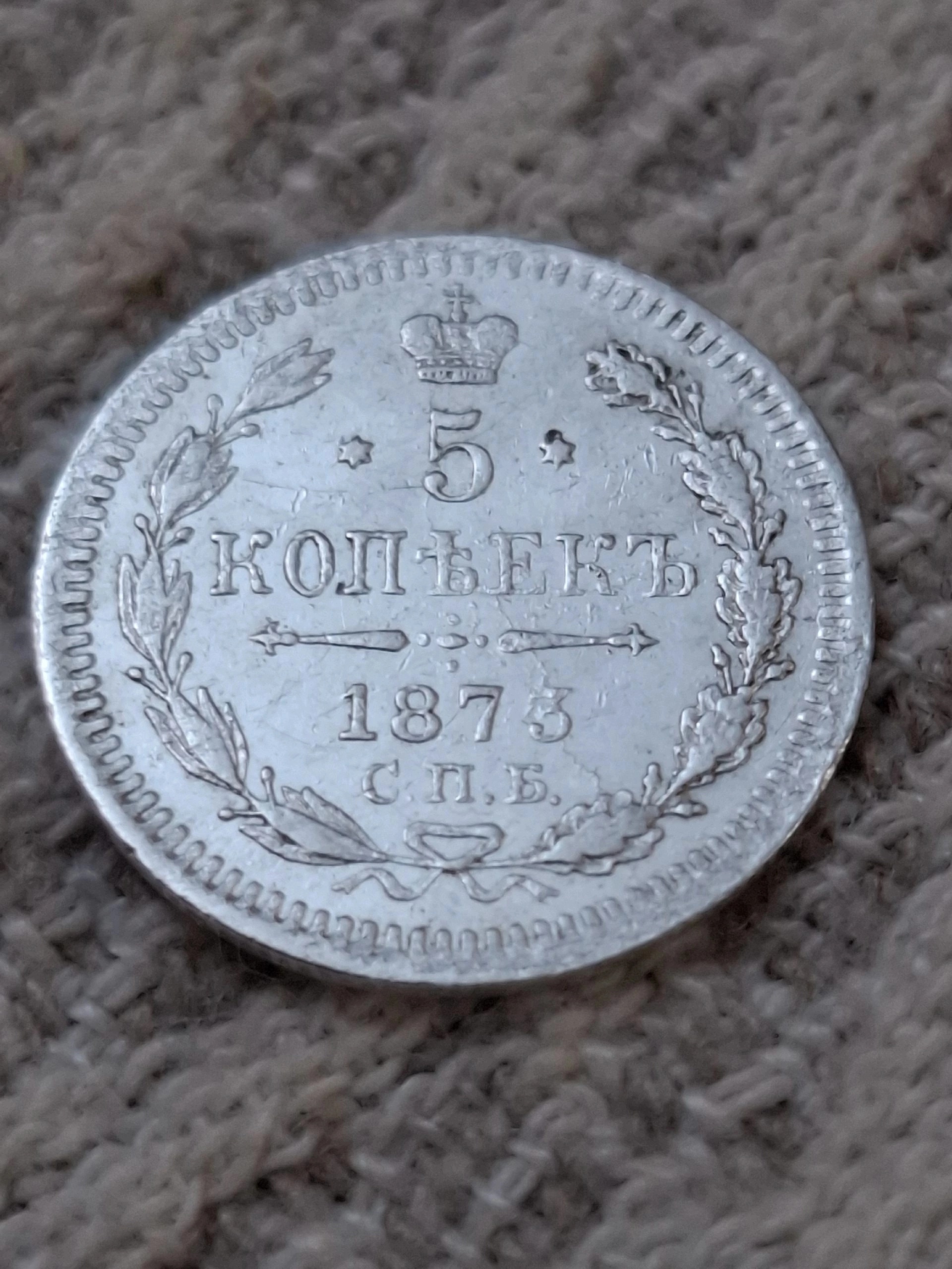 5 копеек 1873 года СПБ — подлинная медная монета Александра II