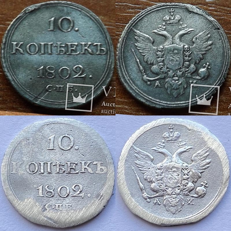 10 копеек 1802 года СПБ — умелая подделка-новодел