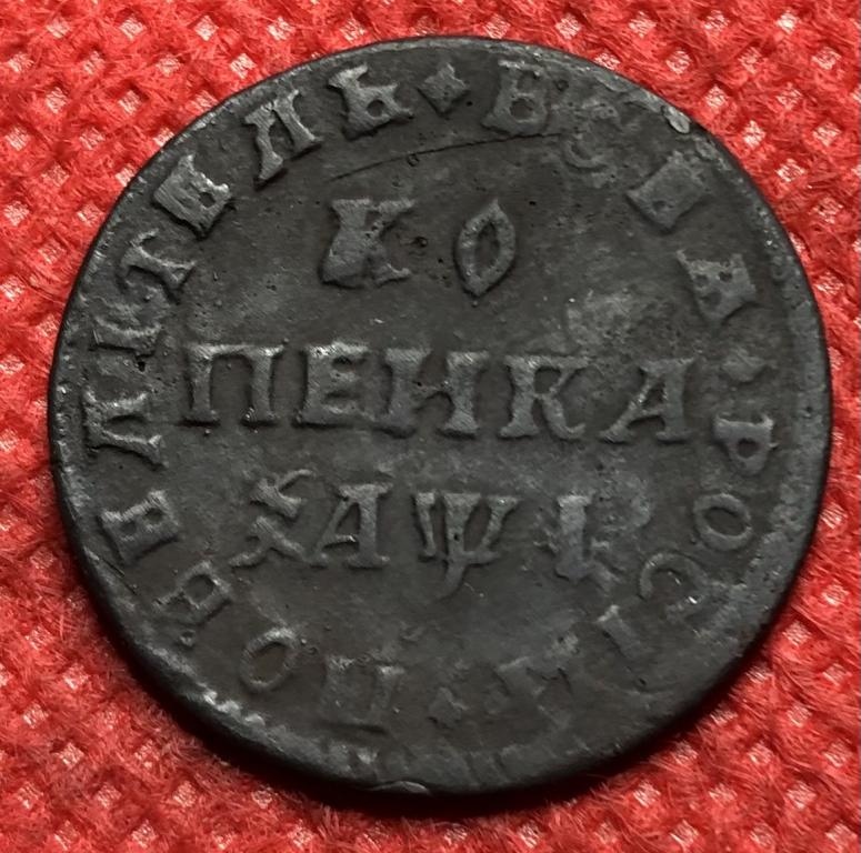 Монета представляет собой копию медной копейки 1707 года, отчеканенной в период правления Петра I. Оригинальные монеты этого типа чеканились на заготовках, вырубленных из проволоки, и имеют характерный вид "чешуйки". В данном случае автор поста прямо указал, что это копия, что исключает её подлинность.
