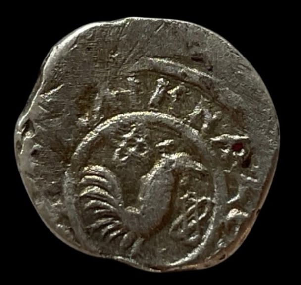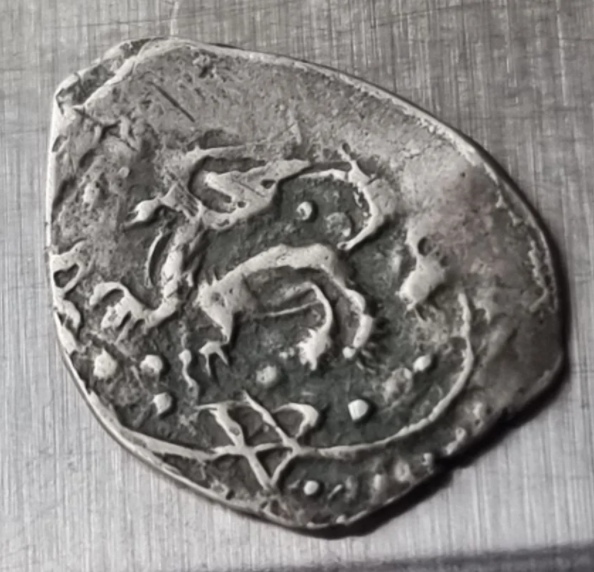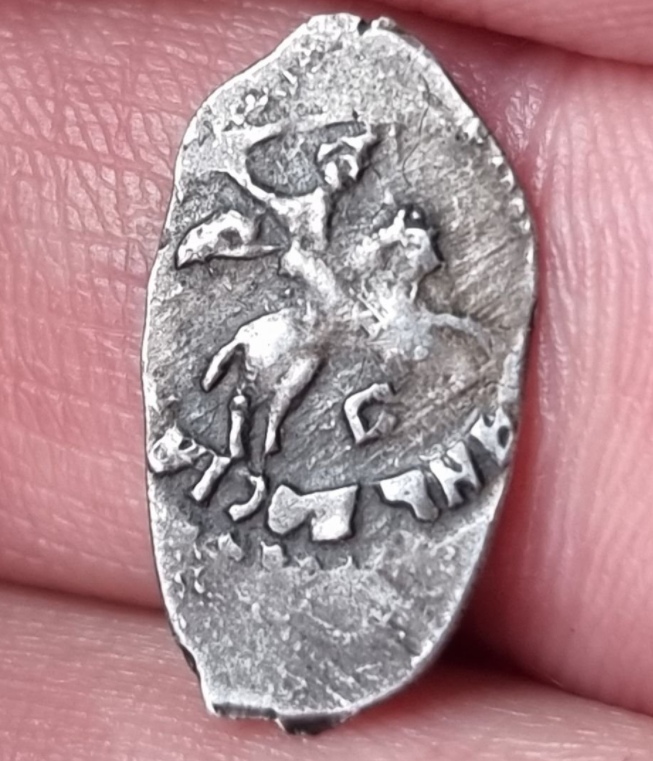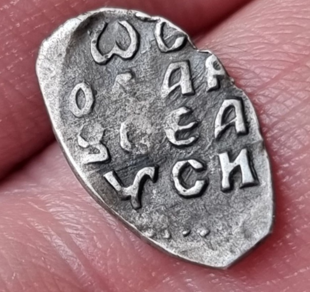 Монета представляет собой подделку серебряной чешуи — проволочной монеты, чеканившейся в России до XVIII века. В посте автор прямо указывает на её неоригинальность. Такие копии часто изготавливаются для коллекционеров-новичков или в сувенирных целях.
