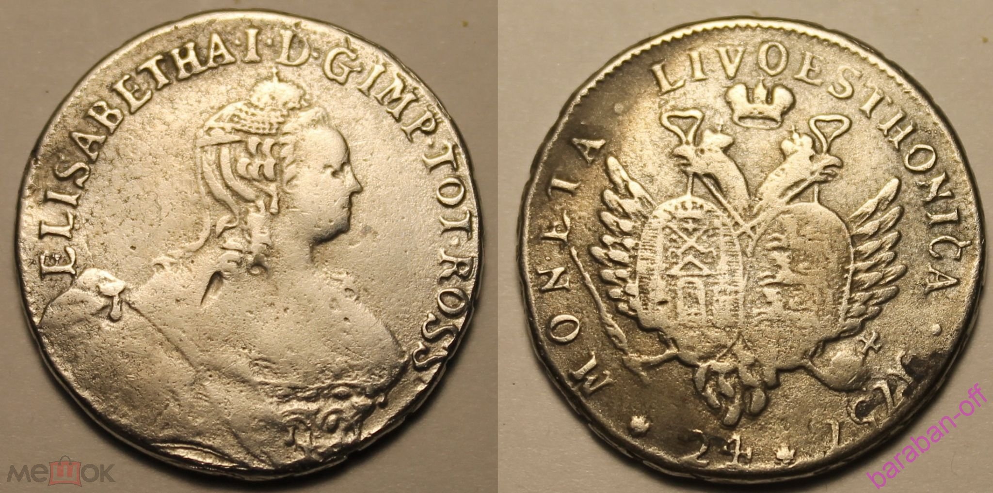 Монета номиналом 24 копейки, известная как «ливонез», чеканилась для Прибалтийских губерний Российской Империи. В данном случае представлена копия, о чём прямо указано в описании поста. Подобные реплики часто изготавливаются для коллекционеров-новичков или в сувенирных целях.
